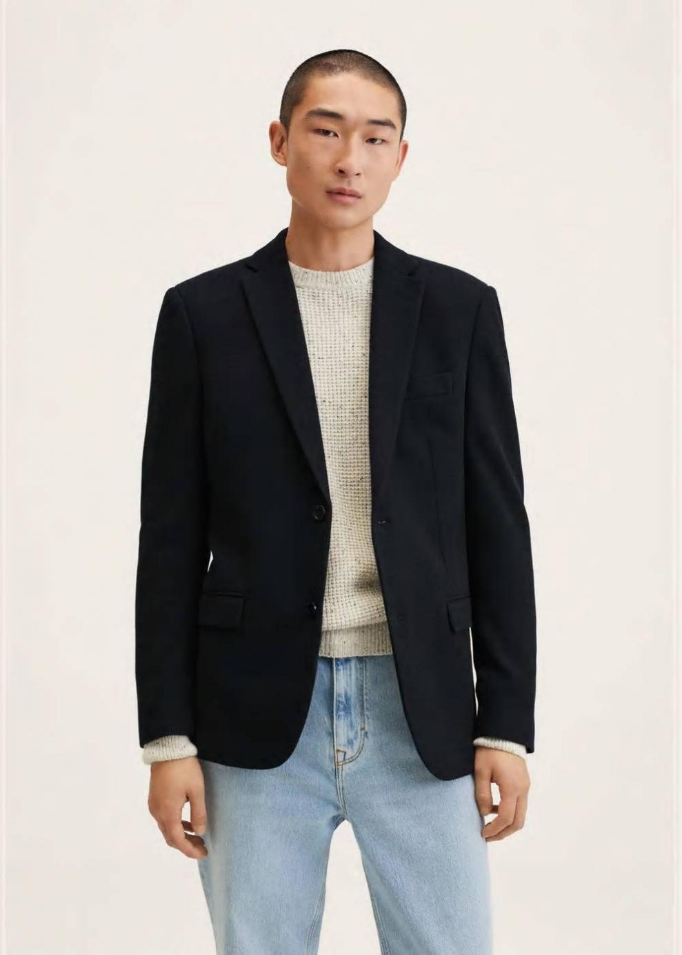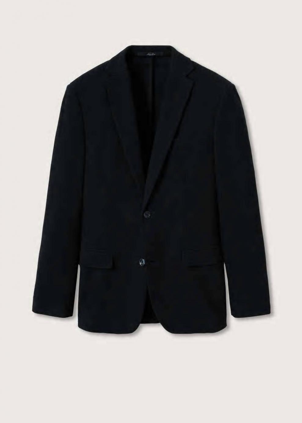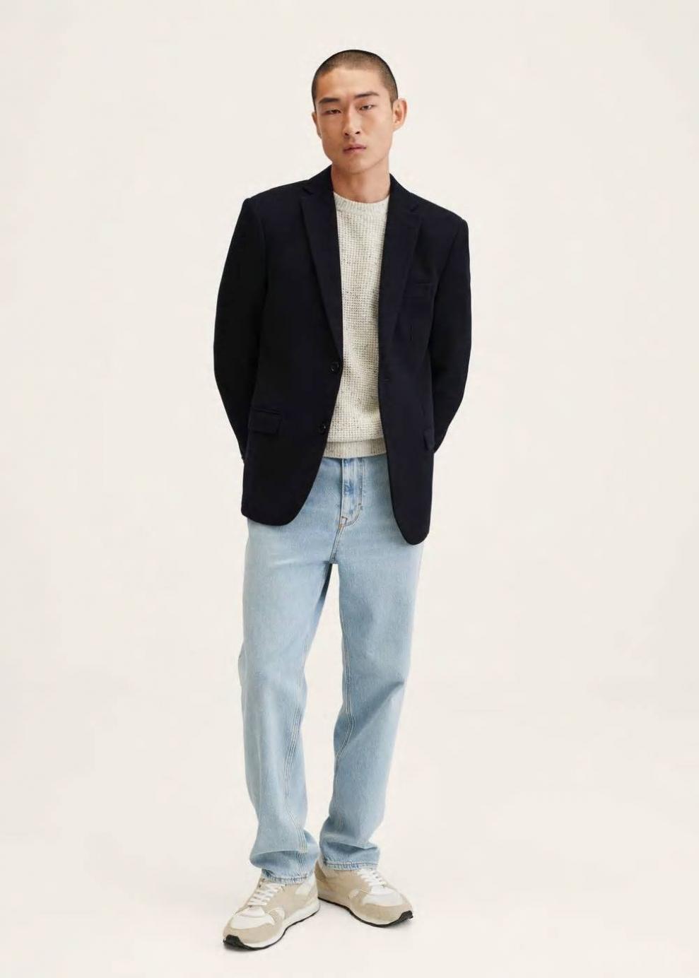 Slim fit Tejido mezcla de algodón Tejido con estructura Solapas con muesca Manga larga abotonada Bolsillo de ribete en el pecho Dos bolsillos de solapa laterales Doble abertura posterior Cierre de botones Forro interior Bolsillo interior El modelo mide 183 cm y lleva una talla 50 Las prendas etiquetadas como Committed son productos que han sido confeccionadas con fibras y/o procesos de producción sostenible, reduciendo así su impacto ambiental. El objetivo de Mango es respaldar la implementación de prácticas más comprometidas con el medio ambiente, aumentando así, el número de prendas sostenibles en su colección.
