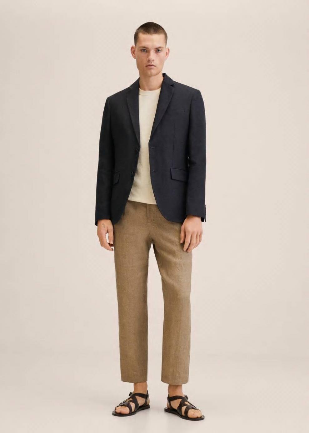 Slim fit 100% Lino Diseño corto Solapas con muesca Manga larga abotonada Bolsillo de ribete en el pecho Dos bolsillos de parche laterales Cierre de botones Forro interior Bolsillos interiores Las excelentes cualidades de esta fibra natural como su ligereza y transpirabilidad hacen que este tejido sea especialmente adecuado para el clima más cálido. Esta prenda, tan cómoda como elegante, es la opción perfecta. Las prendas etiquetadas como Committed son productos que han sido confeccionadas con fibras y/o procesos de producción sostenible, reduciendo así su impacto ambiental. El objetivo de Mango es respaldar la implementación de prácticas más comprometidas con el medio ambiente, aumentando así, el número de prendas sostenibles en su colección.