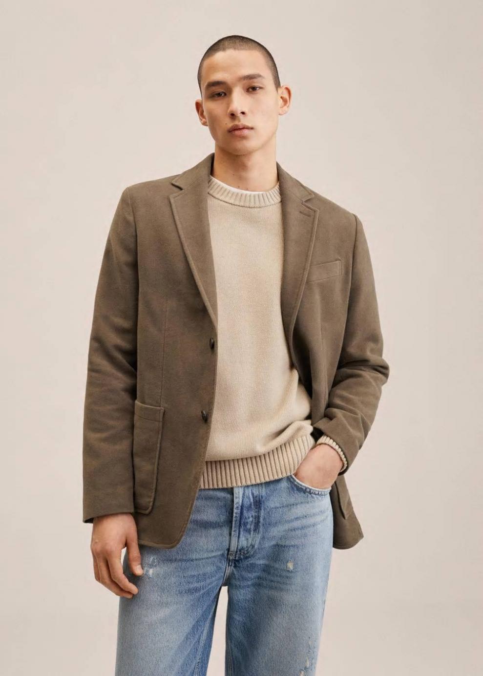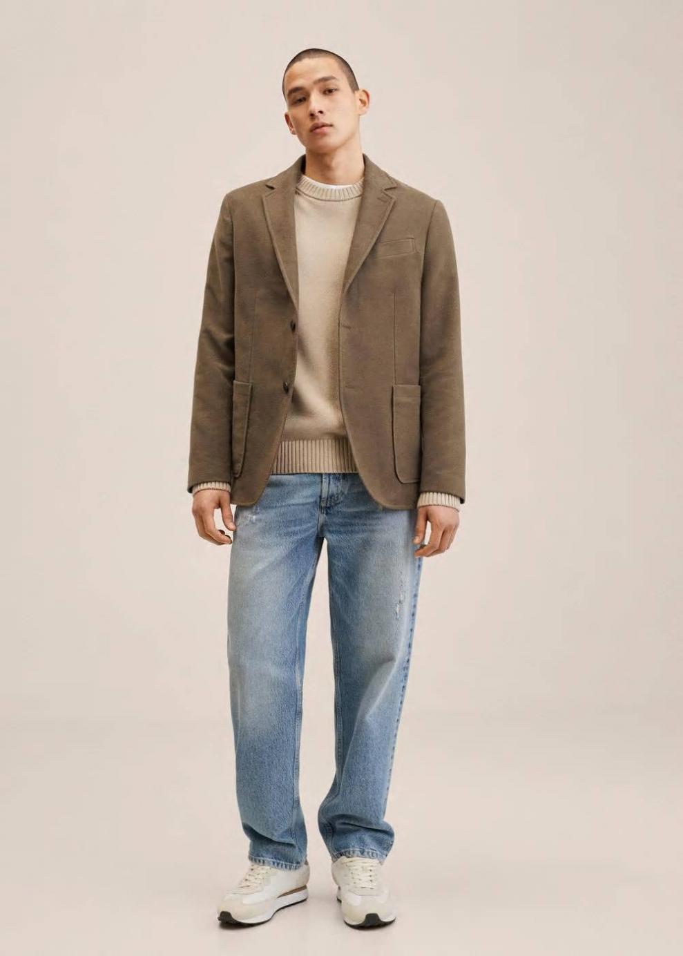 Slim fit Tejido de algodón sostenible Solapas con muesca Manga larga abotonada Bolsillo de ribete en el pecho Dos bolsillos de parche laterales Cierre de botones Forro interior Abertura posterior El modelo mide 185 cm y lleva una talla 50 Las prendas etiquetadas como Committed son productos que han sido confeccionadas con fibras y/o procesos de producción sostenible, reduciendo así su impacto ambiental. El objetivo de Mango es respaldar la implementación de prácticas más comprometidas con el medio ambiente, aumentando así, el número de prendas sostenibles en su colección.