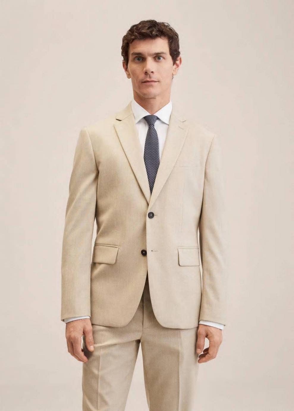 Slim fit Manga larga Cuello regular Diseño estándar Solo forro Tejido de cuadros Manga larga abotonada Diseño corto Solapas con muesca Cierre de botones Bolsillo de ribete en el pecho Dos bolsillos de solapa en la parte frontal Forro interior Bolsillo interior El modelo mide 185 cm y lleva una talla 50 De corte ligeramente ceñido, el traje Slim Fit se estrecha un poco más al cuerpo respecto al Regular Fit. Ideal para aquellos que piden un plus al traje de corte clásico, sin llegar a marcar una silueta muy entallada. El traje Slim Fit viene en distintos modelos: cruzado, de lana y el clásico, ahora fabricado en poliéster reciclado. Combínalo con jersey o camiseta si quieres darle un aire mas informal o con la clásica camisa y corbata para las ocasiones más especiales.