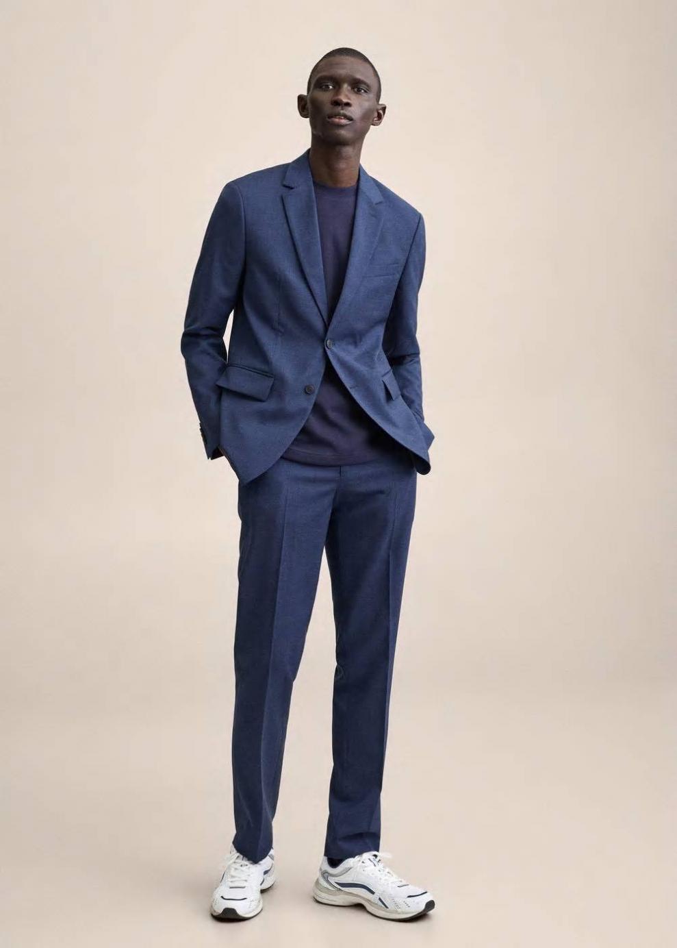 Slim fit 100% lana virgen Tejido termorregulador: regula la temperatura corporal Natural stretch: elasticidad propia del tejido Resistente a las arrugas Solapas con muesca Manga larga abotonada Dos bolsillos de solapa laterales Bolsillo de ribete en el pecho Cierre de botones Forro interior Bolsillo interior El modelo mide 190 cm y lleva una talla 50 De corte ligeramente ceñido, el traje Slim Fit se estrecha un poco más al cuerpo respecto al Regular Fit. Ideal para aquellos que piden un plus al traje de corte clásico, sin llegar a marcar una silueta muy entallada. El traje Slim Fit viene en distintos modelos: cruzado, de lana y el clásico, ahora fabricado en poliéster reciclado. Combínalo con jersey o camiseta si quieres darle un aire mas informal o con la clásica camisa y corbata para las ocasiones más especiales.