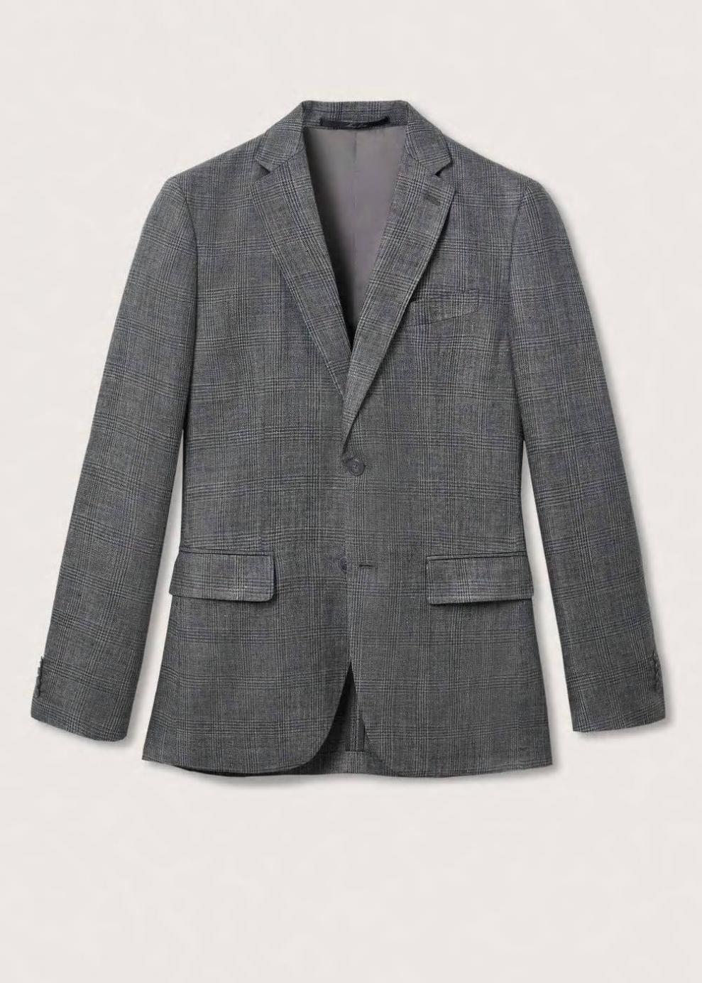 100% Lino Slim fit Tejido Príncipe de Gales Solapas con muesca Hombros estructurados Manga larga con puños abotonados Bolsillo de ribete en el pecho Dos bolsillos de solapa laterales Aberturas posteriores Cierre de botones Forro interior Bolsillos interiores El modelo mide 185 cm y lleva una talla 50 Las prendas etiquetadas como Committed son productos que han sido confeccionadas con fibras y/o procesos de producción sostenible, reduciendo así su impacto ambiental. El objetivo de Mango es respaldar la implementación de prácticas más comprometidas con el medio ambiente, aumentando así, el número de prendas sostenibles en su colección.