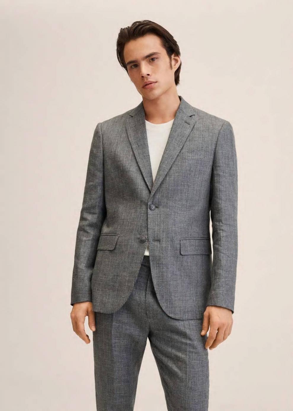 Hombre Americana traje slim fit lino Gris Oscuro Vigoré | Americanas Mango