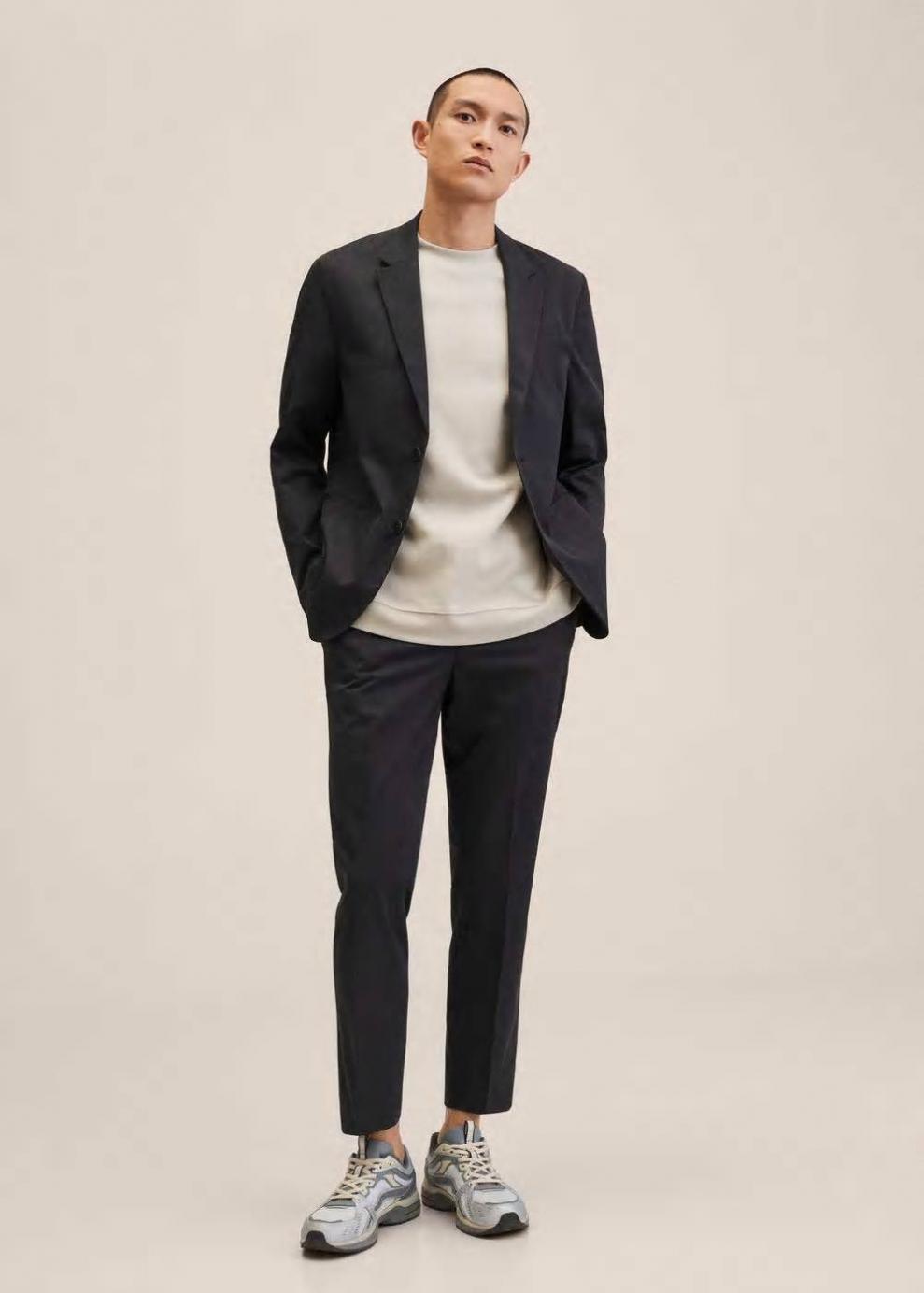 Slim fit Tejido Solotex sostenible hecho con un 37% de biomasa que aporta una textura ultra suave y una rápida recuperación de su forma original Quick Dry: tejido de secado rápido Tejido resistente a las arrugas Solapas con muesca Manga larga Dos bolsillos de ribete en la parte delantera Cierre de botones Sin forro interior Doble abertura posterior Permite lavar a máquina El modelo mide 187 cm y lleva una talla 50 La selección Performance incluye prendas confeccionadas con fibras técnicas que te mantendrán intacto y, sobre todo, cómodo durante todo el día, hagas lo que hagas y vayas donde vayas. Esta selección de alto rendimiento incluye una amplia gama de características avanzadas como tejidos bi-stretch, de secado rápido, fácil planchado, termorreguladores, transpirables o repelentes al agua, organizadas en cuatro categorías generales: Termorregulador, Funcional, Fácil Cuidado y Confort.