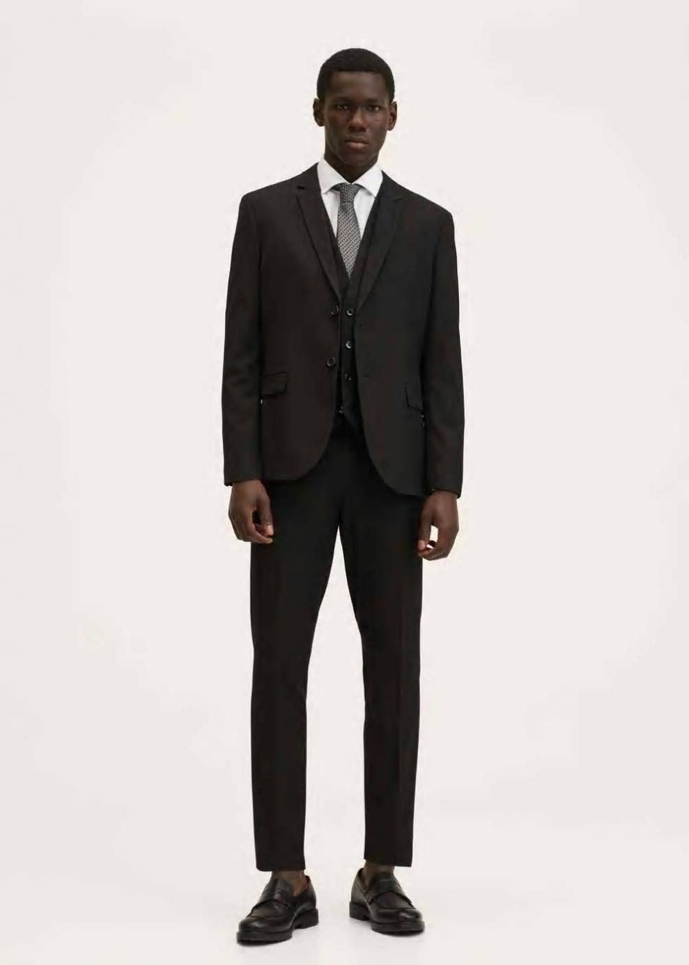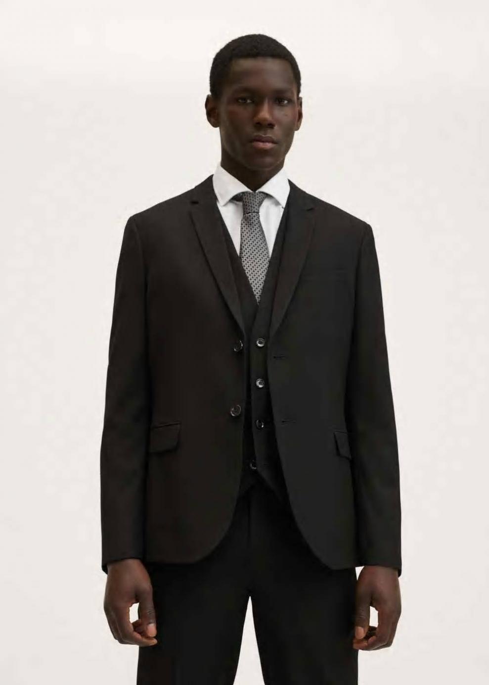 Super slim fit Tejido mezcla de poliéster reciclado Hombros estructurados Solapas con muesca Bolsillo de ribete en el pecho Dos bolsillos de solapa en la parte frontal Manga larga con puños abotonados Doble abertura posterior Cierre de botones Forro interior Bolsillos interiores El modelo mide 187 cm y lleva una talla 50 El modelo Super Slim es el fit más ajustado que encontrarás en nuestra colección de trajes. Se ha diseñado en diferentes colores y estampados para vestir distintos momentos del día y ajustarse a tu personalidad. Ideal para eventos y celebraciones informales. Combínalo con una corbata y camisa si quieres darle un aire más clásico y formal.