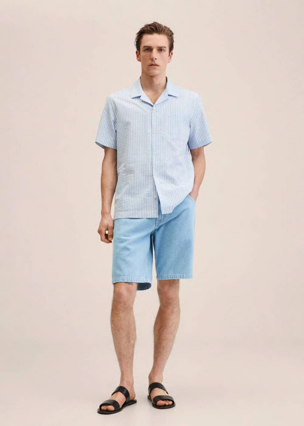 Regular fit Tejido de algodón sostenible Tejido de algodón estilo tejano vaquero Trabillas Dos bolsillos laterales Dos bolsillos de parche en la parte posterior El modelo mide 185 cm y lleva una talla 42 Las prendas etiquetadas como Committed son productos que han sido confeccionadas con fibras y/o procesos de producción sostenible, reduciendo así su impacto ambiental. El objetivo de Mango es respaldar la implementación de prácticas más comprometidas con el medio ambiente, aumentando así, el número de prendas sostenibles en su colección.