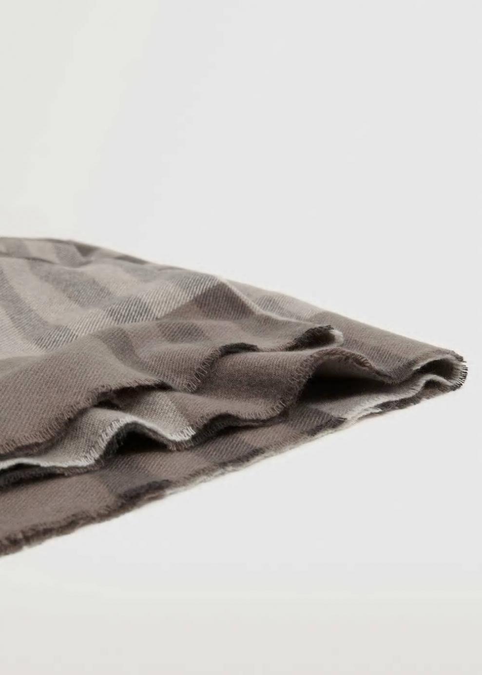 Tejido con textura Diseño de cuadros Terminación de flecos Las prendas etiquetadas como Committed son productos que han sido confeccionadas con fibras y/o procesos de producción sostenible, reduciendo así su impacto ambiental. El objetivo de Mango es respaldar la implementación de prácticas más comprometidas con el medio ambiente, aumentando así, el número de prendas sostenibles en su colección.