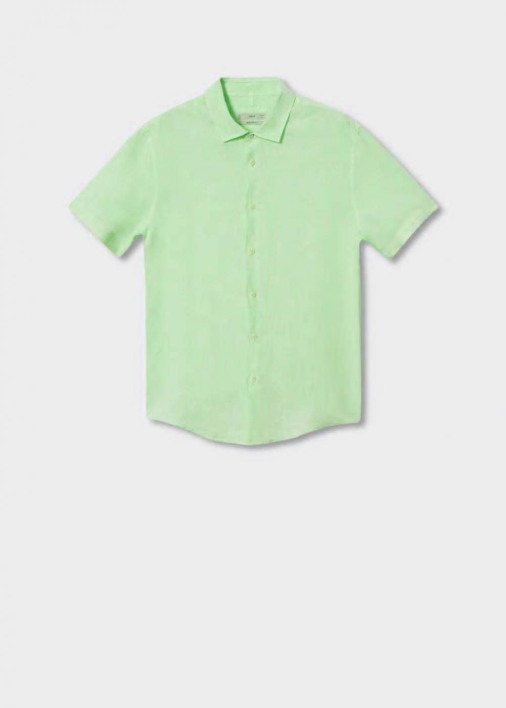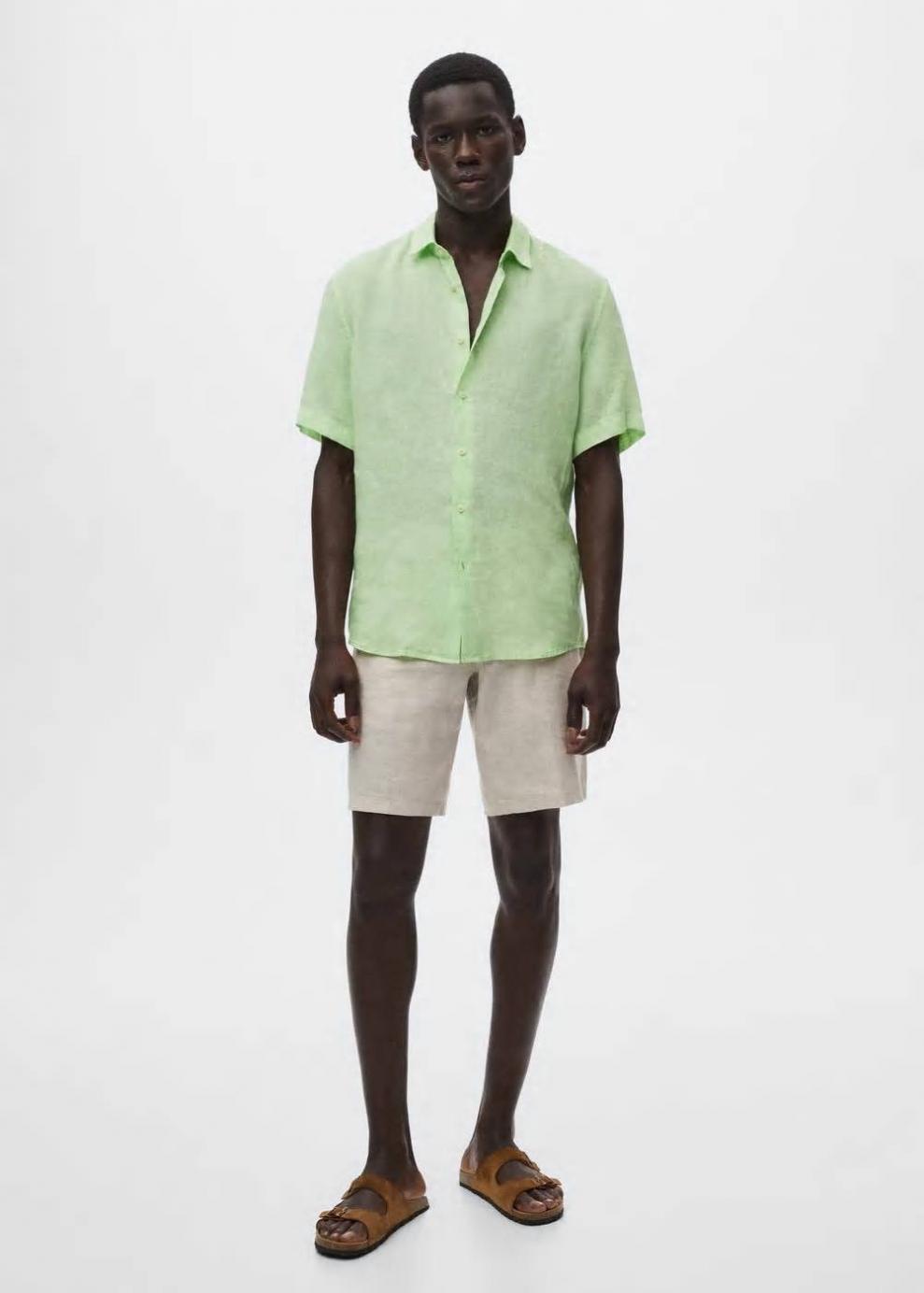 Hombre Camisa 100% lino manga corta Verde Pastel | Camisas Mango