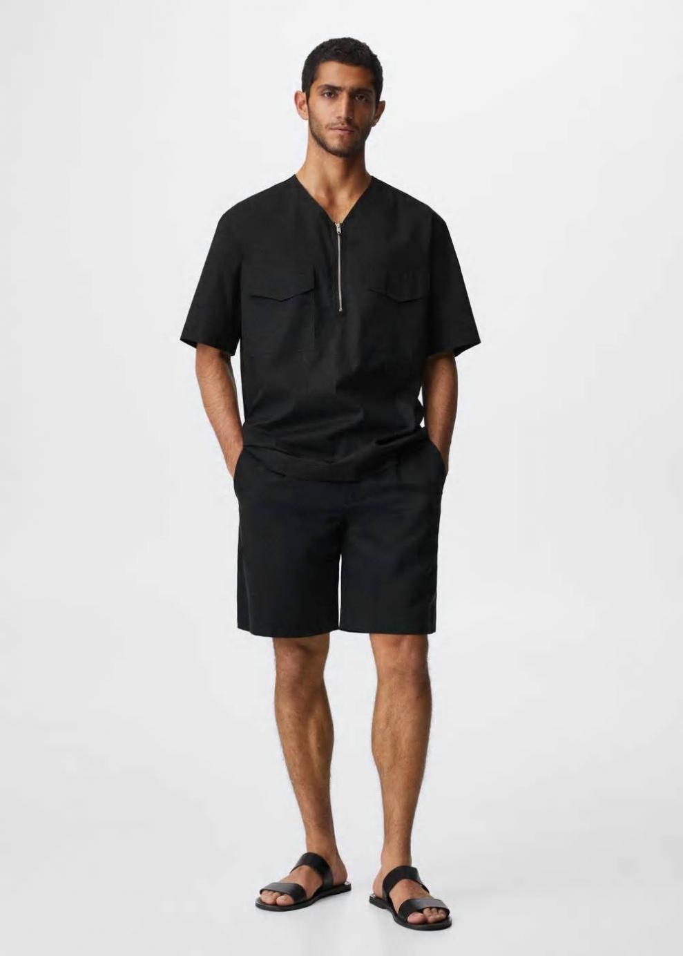 Regular fit Tejido mezcla de algodón Tejido ligero Cuello redondo Manga corta Dos bolsillos de solapa en el pecho Cierre de cremallera en el cuello El modelo mide 183 cm y lleva una talla M Las prendas etiquetadas como Committed son productos que han sido confeccionadas con fibras y/o procesos de producción sostenible, reduciendo así su impacto ambiental. El objetivo de Mango es respaldar la implementación de prácticas más comprometidas con el medio ambiente, aumentando así, el número de prendas sostenibles en su colección.