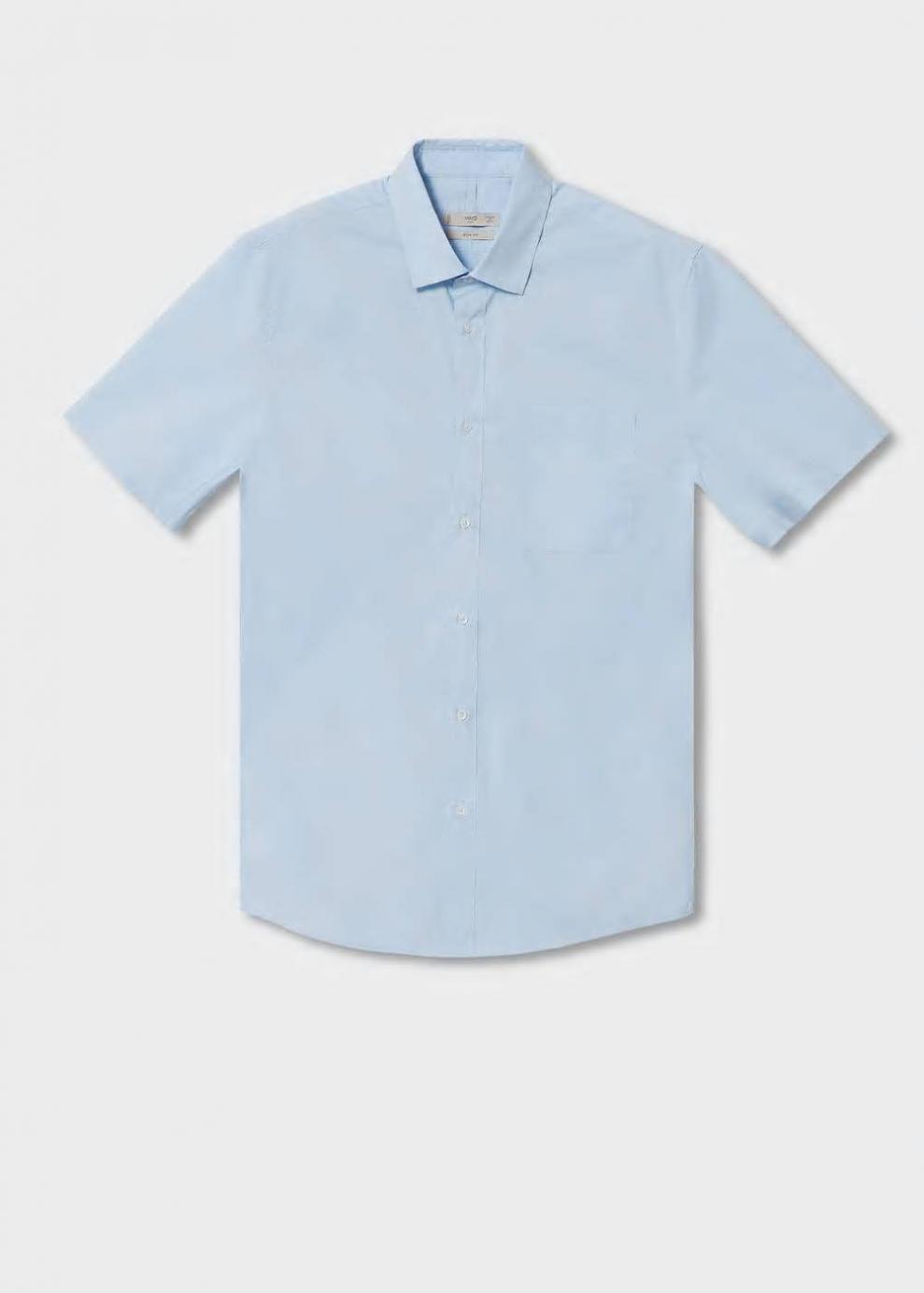 Hombre Camisa algodón manga corta Azul Celeste | Camisas Mango