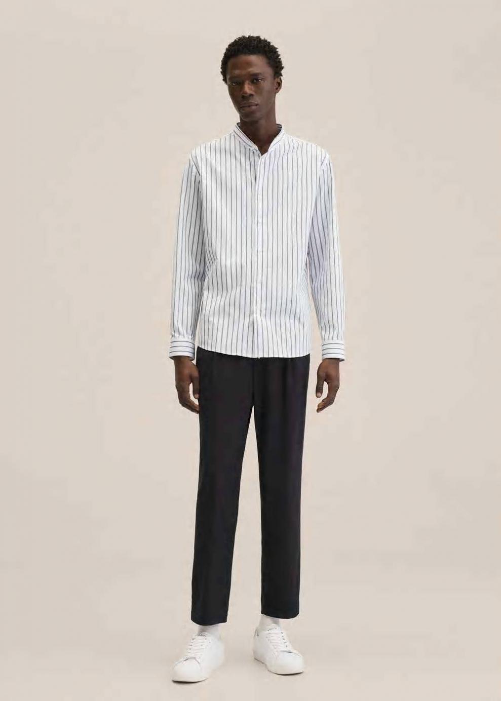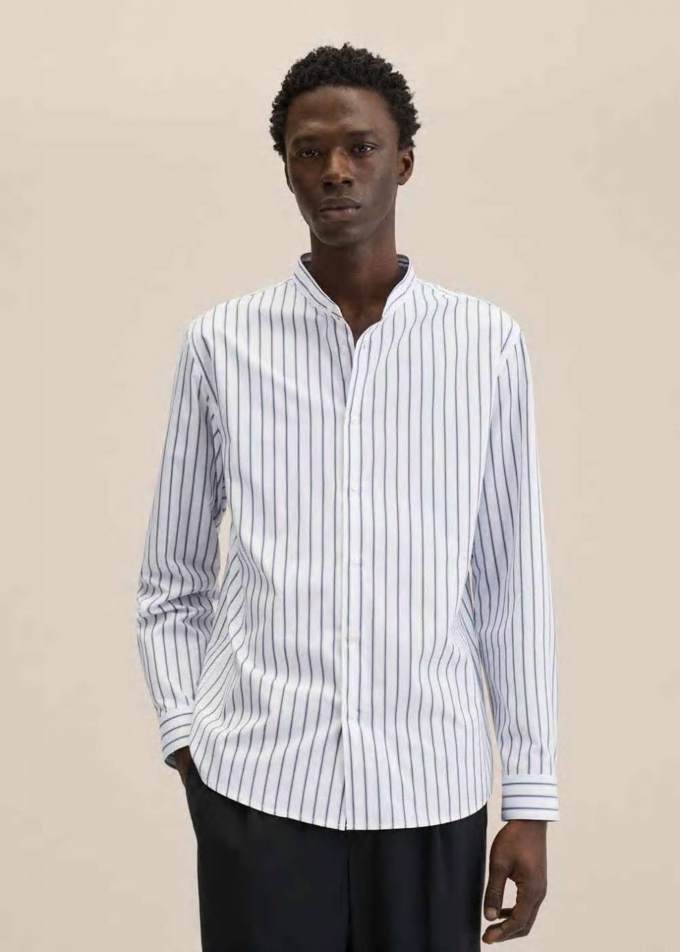 Slim fit Manga larga Tejido ligero Cierre delantero Diseño estándar Diseño de rayas Tejido mezcla de algodón sostenible Coolmax® es un tejido especial que ayuda a expulsar la humedad de la piel, con lo cual, en climas fríos permite mantener el cuerpo seco y caliente, en climas cálidos, destaca por su ligereza y frescura Cuello mao Manga larga con puños abotonados Cierre de botones El modelo mide 190 cm y lleva una talla M Las prendas etiquetadas como Committed son productos que han sido confeccionadas con fibras y/o procesos de producción sostenible, reduciendo así su impacto ambiental. El objetivo de Mango es respaldar la implementación de prácticas más comprometidas con el medio ambiente, aumentando así, el número de prendas sostenibles en su colección.