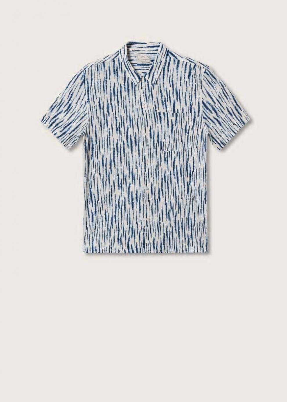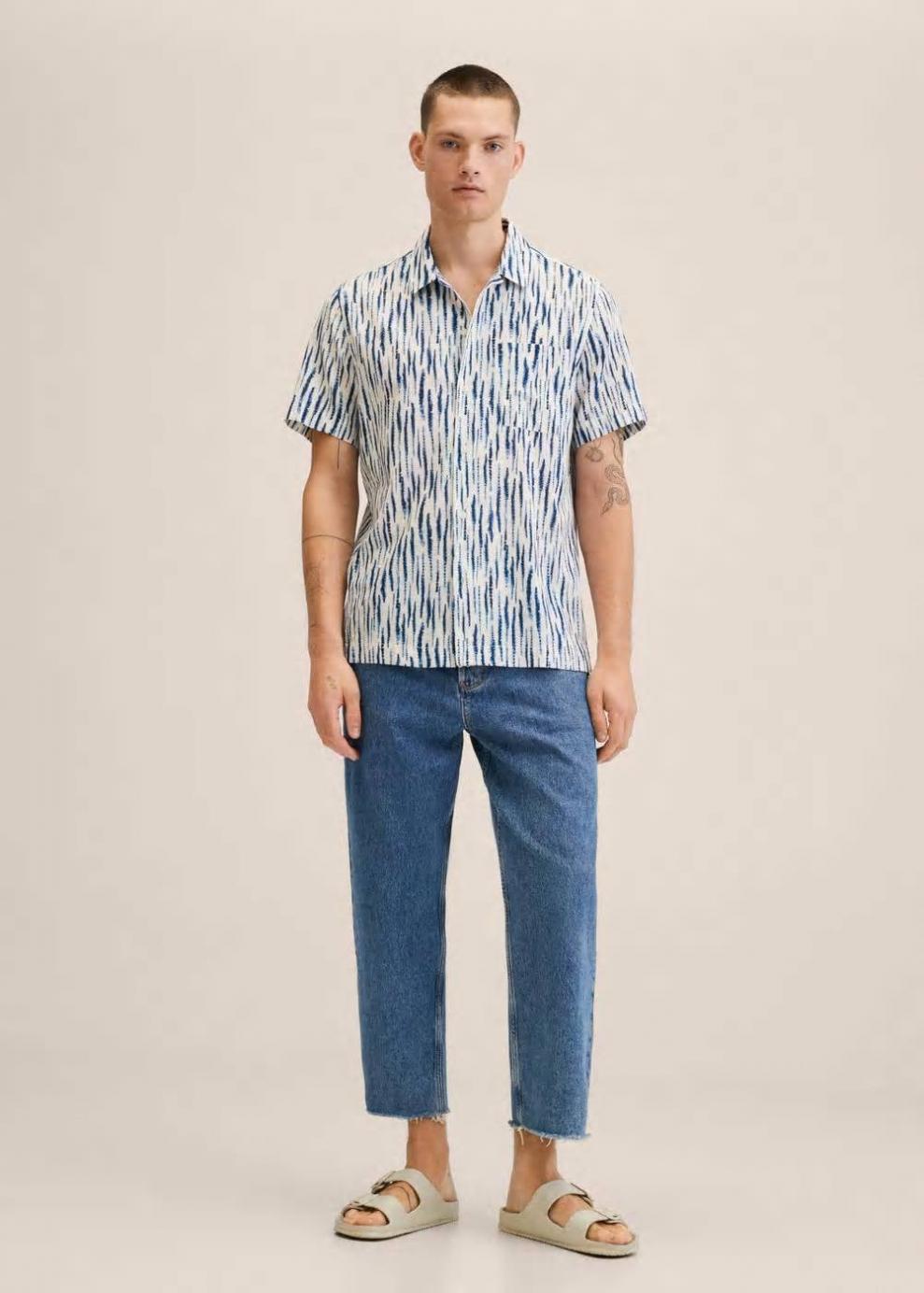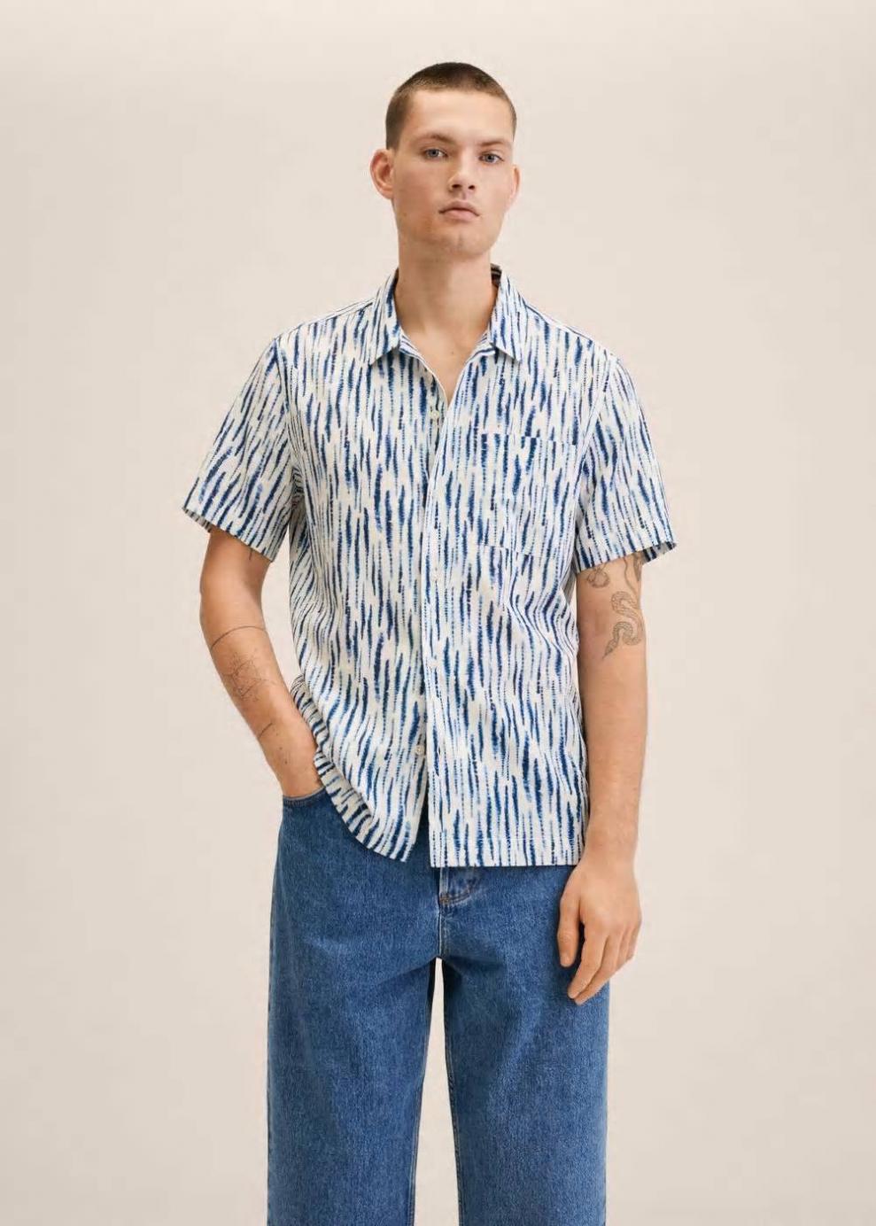 Regular fit Diseño estampado Tejido de algodón Cuello bowling Cuello camisero Manga corta Bolsillo de parche en el pecho Cierre de botones…