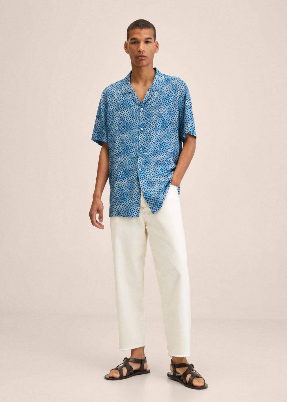 Diseño estampado Regular fit Tejido fluido Cuello bowling Manga corta Cierre de botones El modelo mide 185 cm y lleva una talla M…