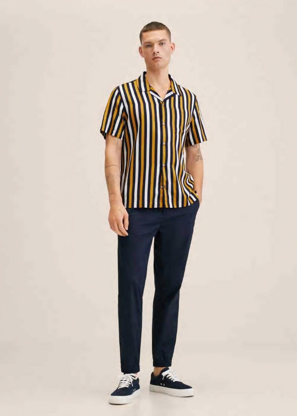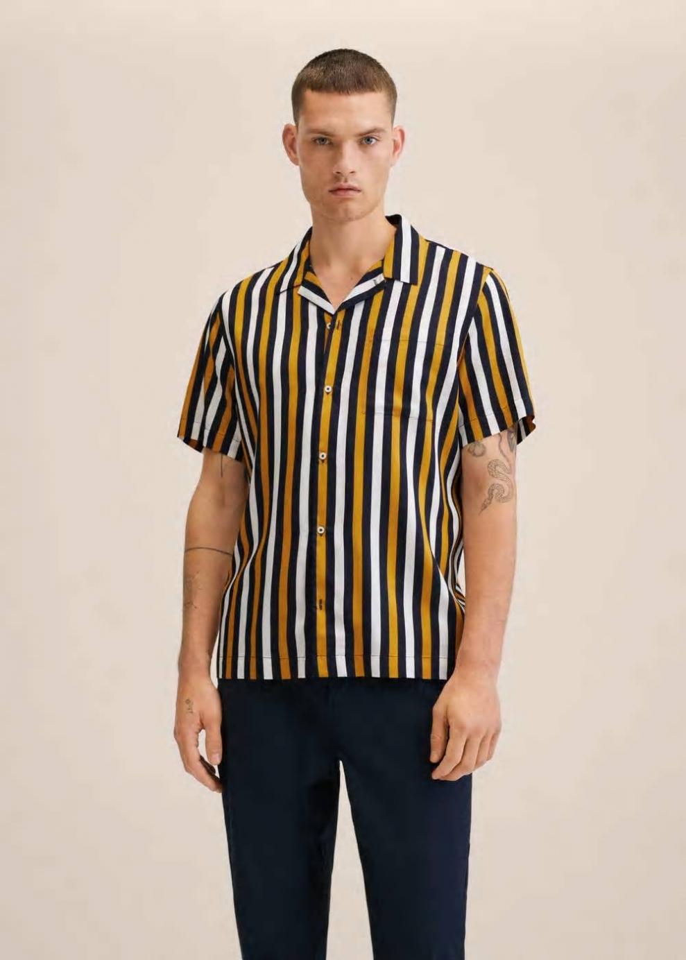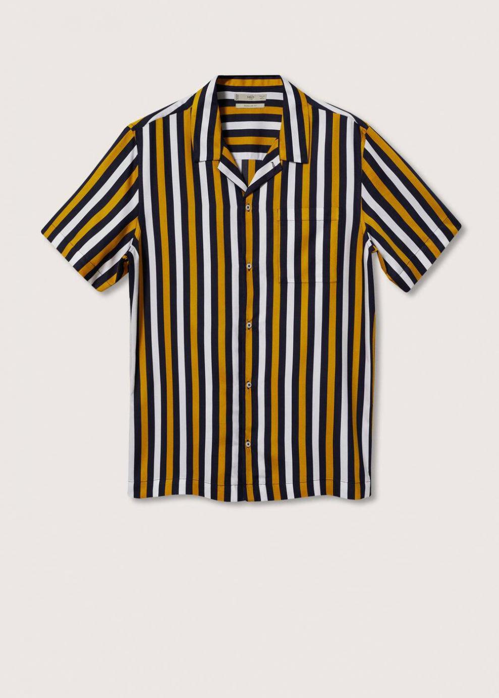 Regular fit Diseño de rayas Tejido fluido Cuello bowling Manga corta Cierre de botones El modelo mide 190 cm y lleva una talla M…