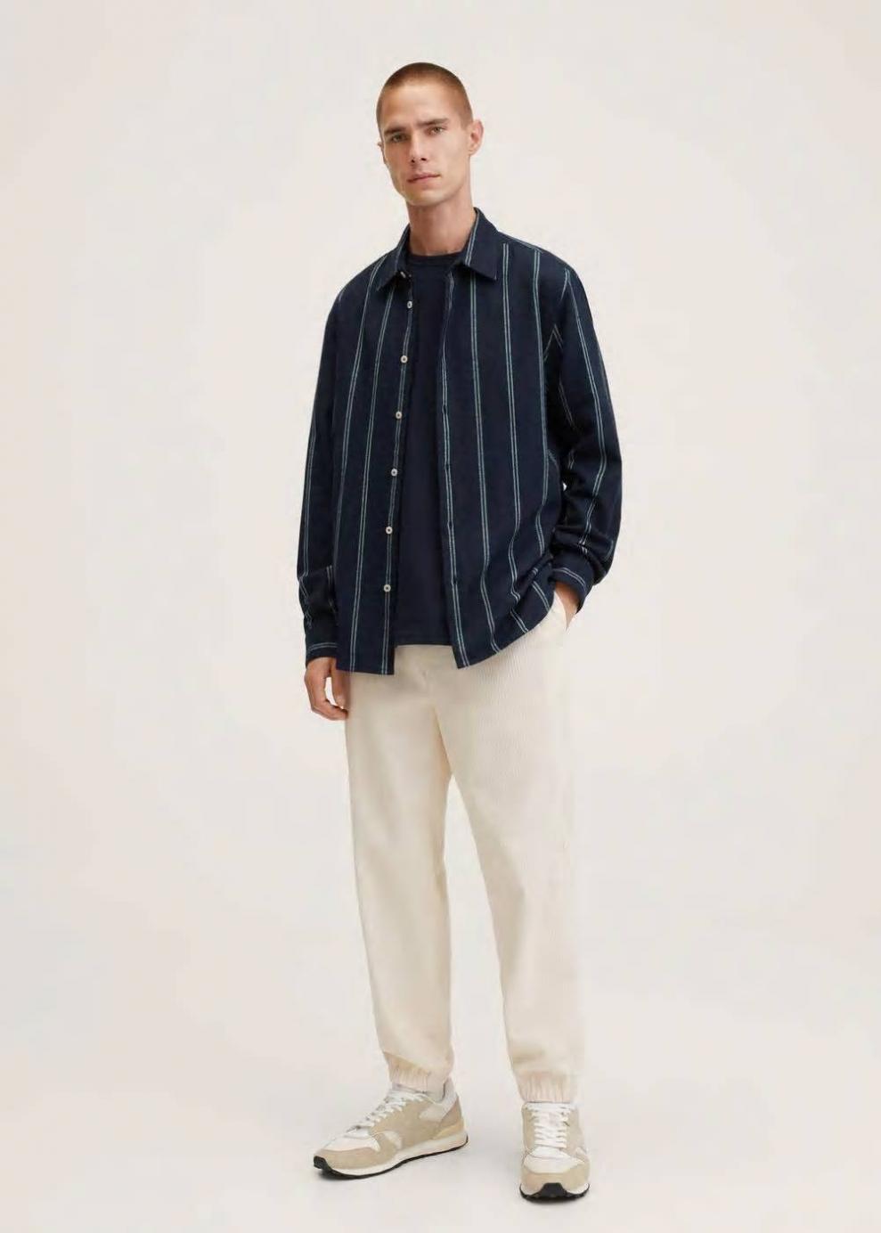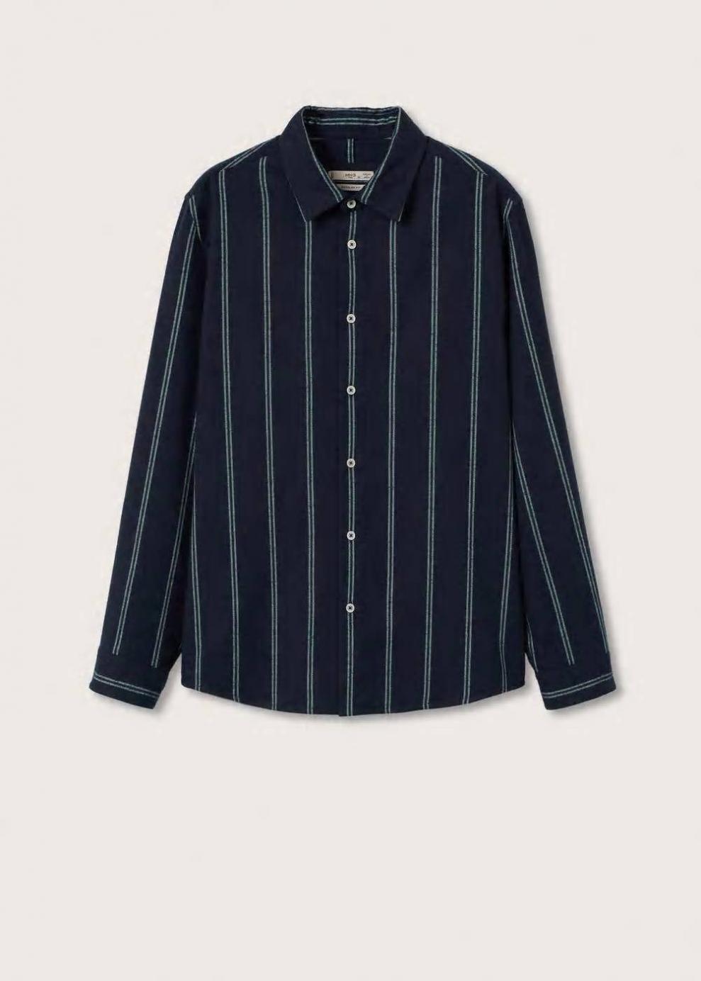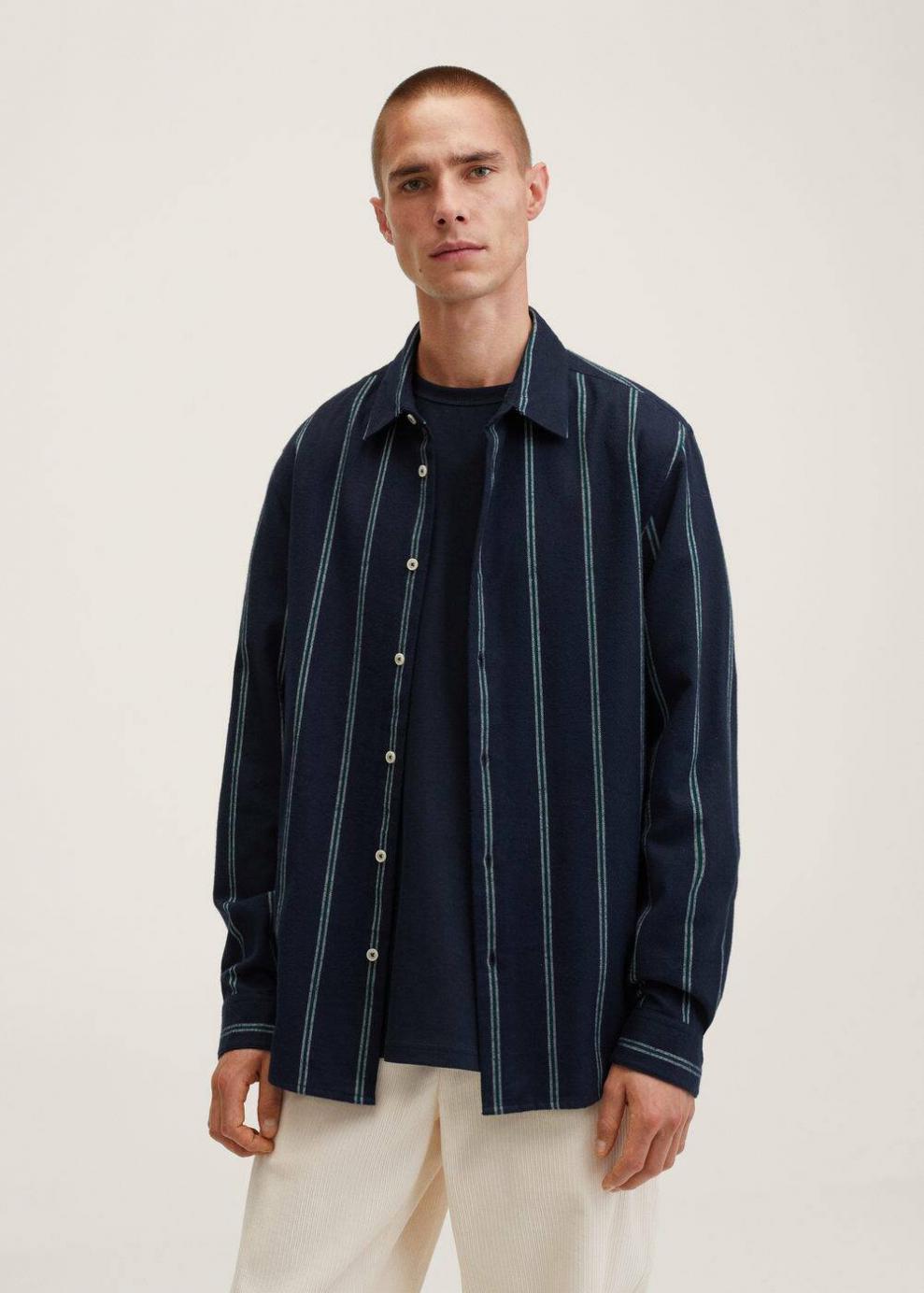 Diseño de rayas Manga larga Tejido ligero Cuello regular Diseño estándar Cierre delantero Regular fit Tejido de algodón sostenible Tejido de franela Cuello clásico Manga larga abotonada Cierre de botones Las prendas etiquetadas como Committed son productos que han sido confeccionadas con fibras y/o procesos de producción sostenible, reduciendo así su impacto ambiental. El objetivo de Mango es respaldar la implementación de prácticas más comprometidas con el medio ambiente, aumentando así, el número de prendas sostenibles en su colección.