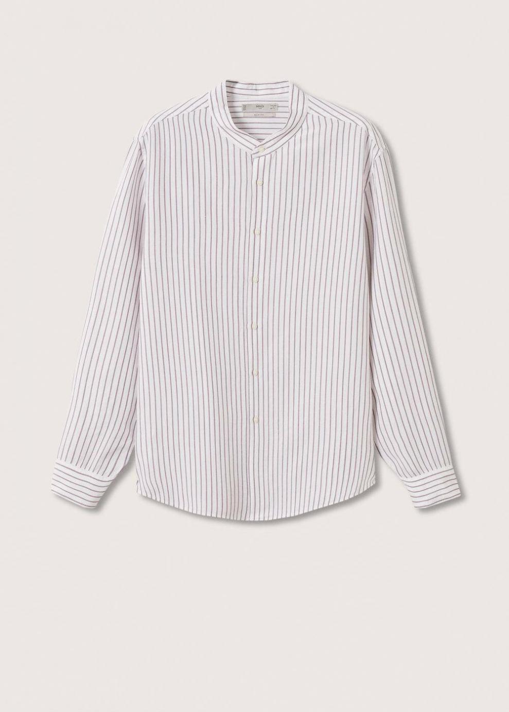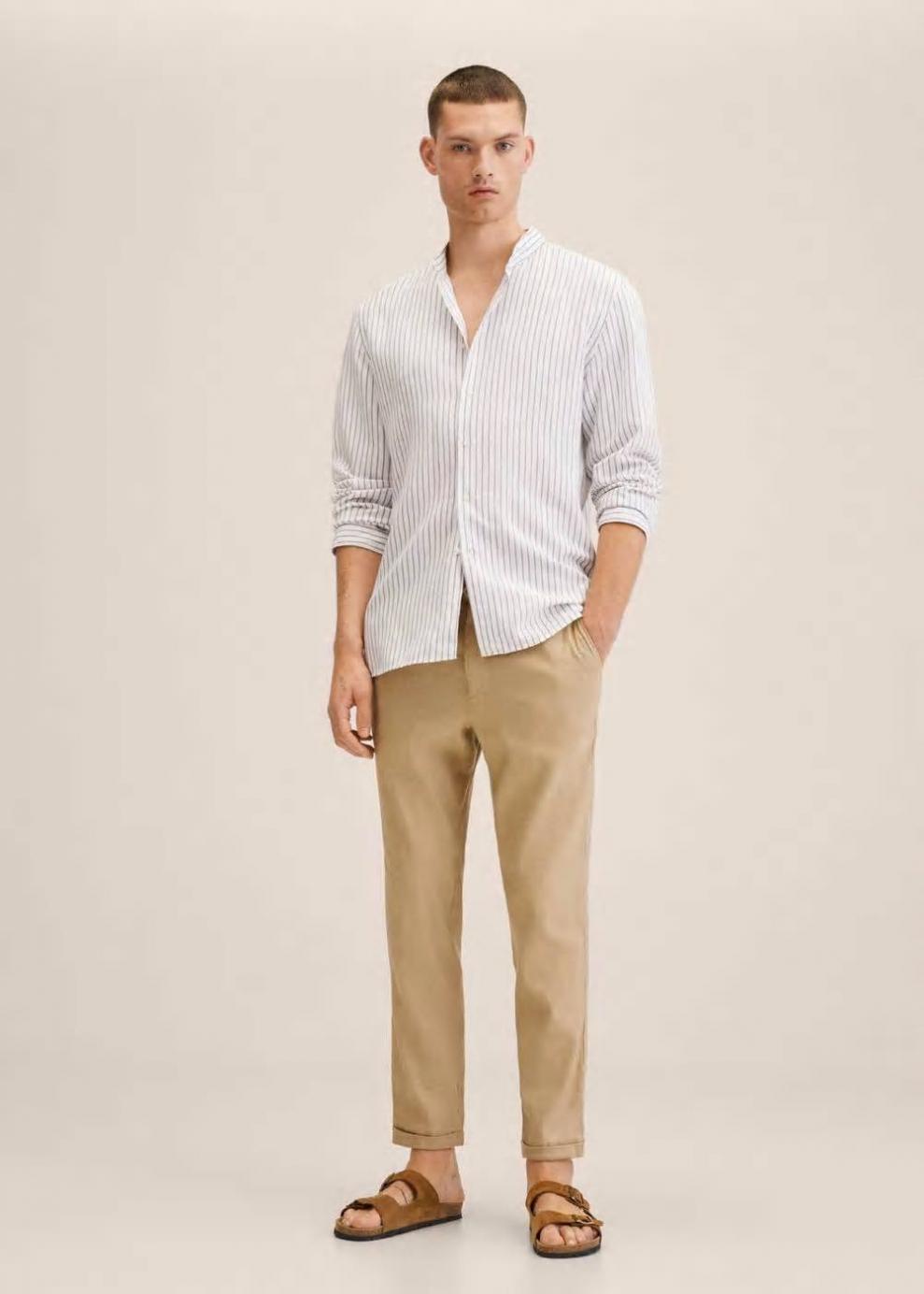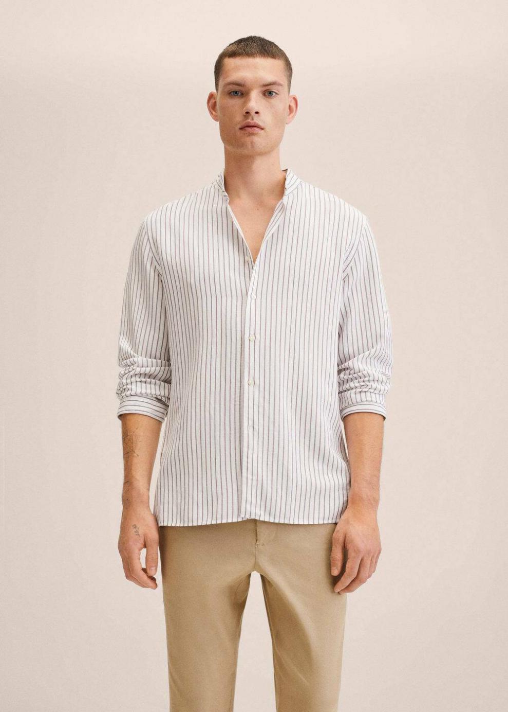 Diseño de rayas Slim fit Tejido fluido Tejido con lino Cuello mao Manga larga Cierre de botones El modelo mide 187 cm y lleva una talla M Las prendas etiquetadas como Committed son productos que han sido confeccionadas con fibras y/o procesos de producción sostenible, reduciendo así su impacto ambiental. El objetivo de Mango es respaldar la implementación de prácticas más comprometidas con el medio ambiente, aumentando así, el número de prendas sostenibles en su colección.