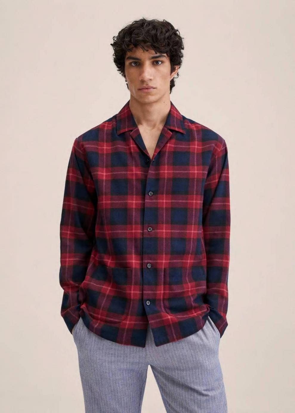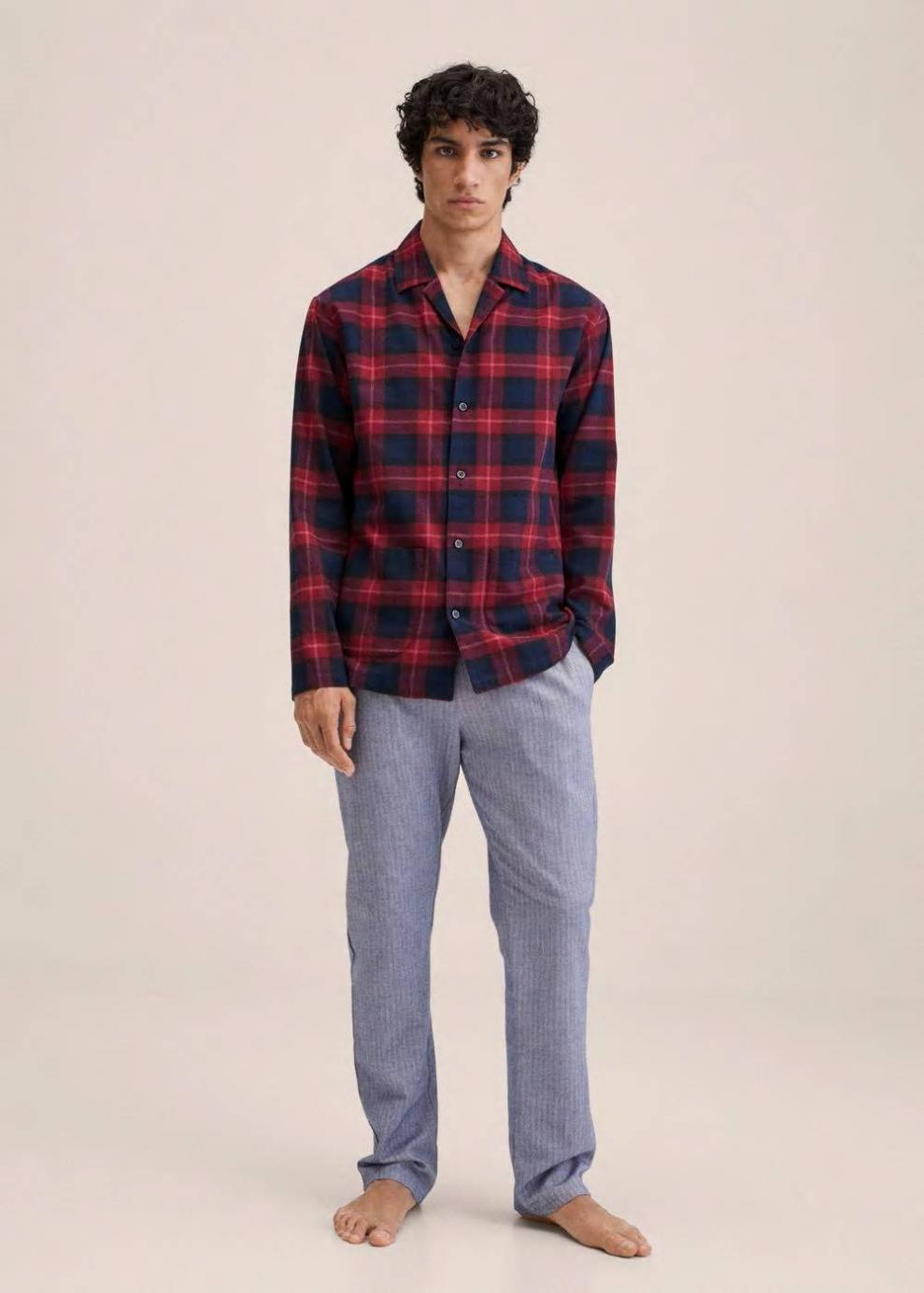 Manga larga Diseño oversize Tejido ligero Camisa de pijama Cierre delantero Diseño estándar Tejido de algodón sostenible Diseño de cuadros Cuello bowling Cierre de botones Manga larga abotonada El modelo mide 185 cm y lleva una talla M Las prendas etiquetadas como Committed son productos que han sido confeccionadas con fibras y/o procesos de producción sostenible, reduciendo así su impacto ambiental. El objetivo de Mango es respaldar la implementación de prácticas más comprometidas con el medio ambiente, aumentando así, el número de prendas sostenibles en su colección.