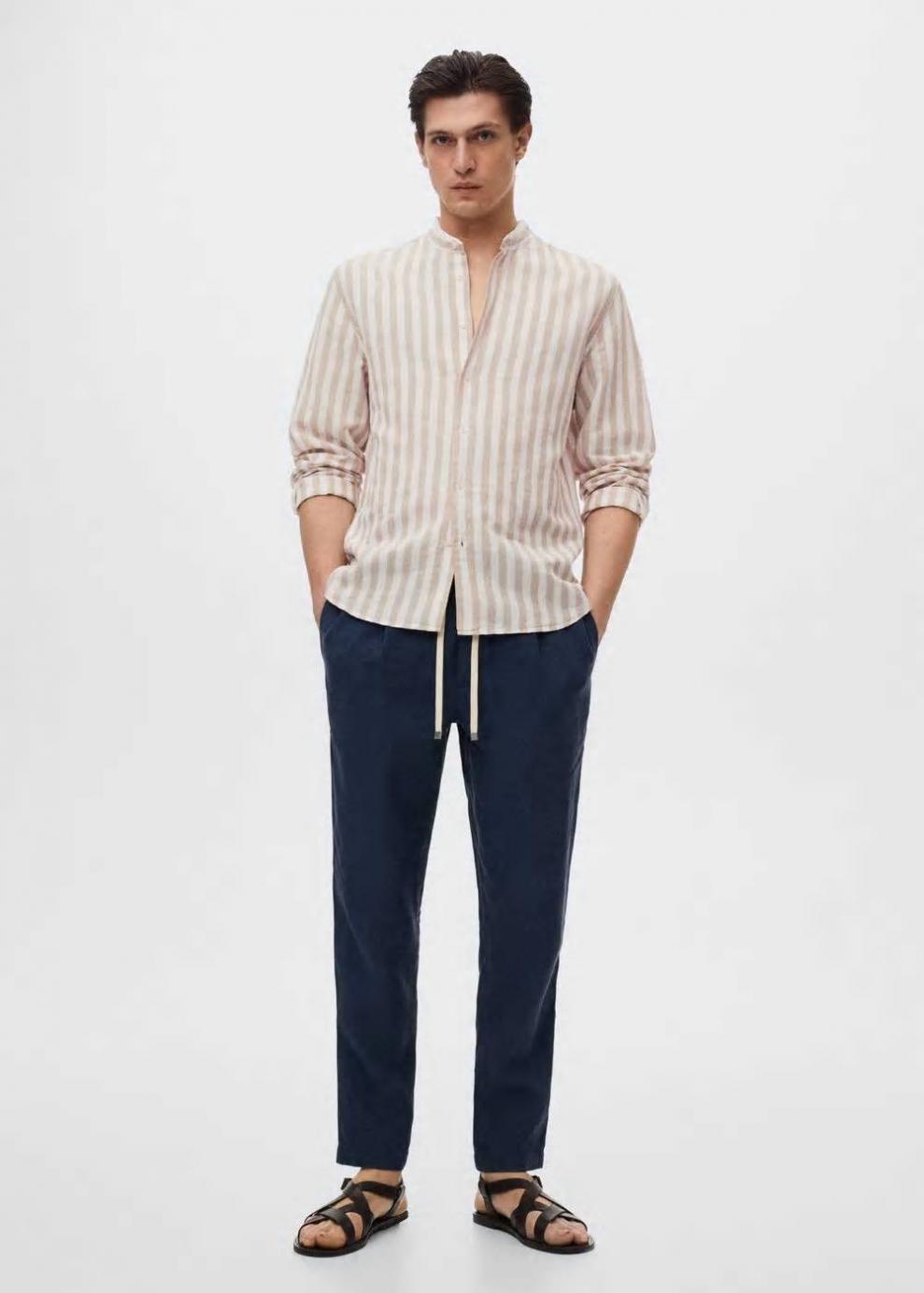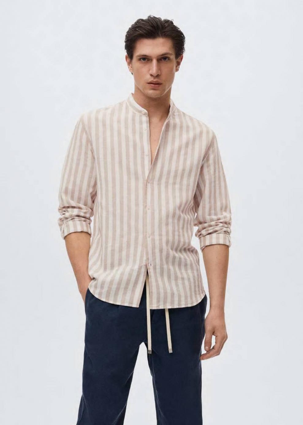 Exclusivo Online Diseño de rayas Regular fit Tejido mezcla de lino y algodón Cuello mao Manga larga abotonada Cierre de botones El modelo mide 187 cm y lleva una talla M Las prendas etiquetadas como Committed son productos que han sido confeccionadas con fibras y/o procesos de producción sostenible, reduciendo así su impacto ambiental. El objetivo de Mango es respaldar la implementación de prácticas más comprometidas con el medio ambiente, aumentando así, el número de prendas sostenibles en su colección.