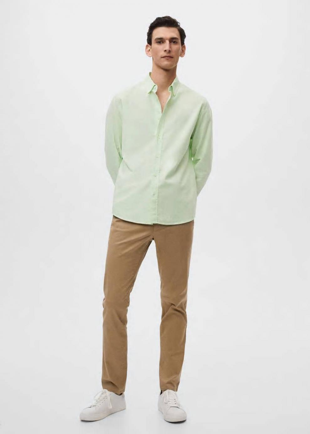 Regular fit Tejido de algodón sostenible Cuello clásico Manga larga abotonada Cierre de botones Las prendas etiquetadas como Committed son productos que han sido confeccionadas con fibras y/o procesos de producción sostenible, reduciendo así su impacto ambiental. El objetivo de Mango es respaldar la implementación de prácticas más comprometidas con el medio ambiente, aumentando así, el número de prendas sostenibles en su colección.
