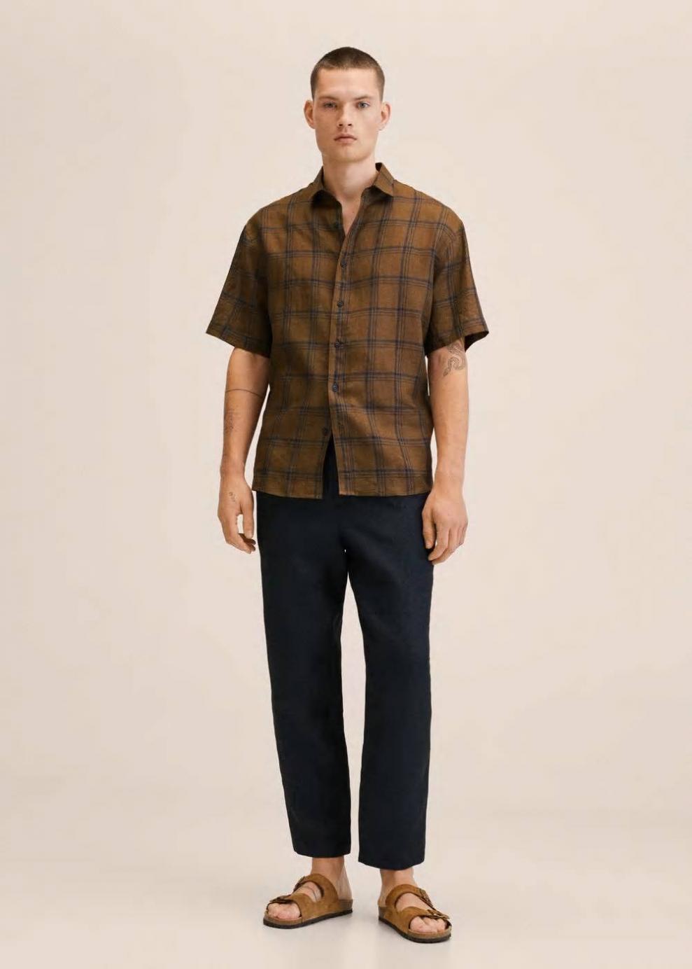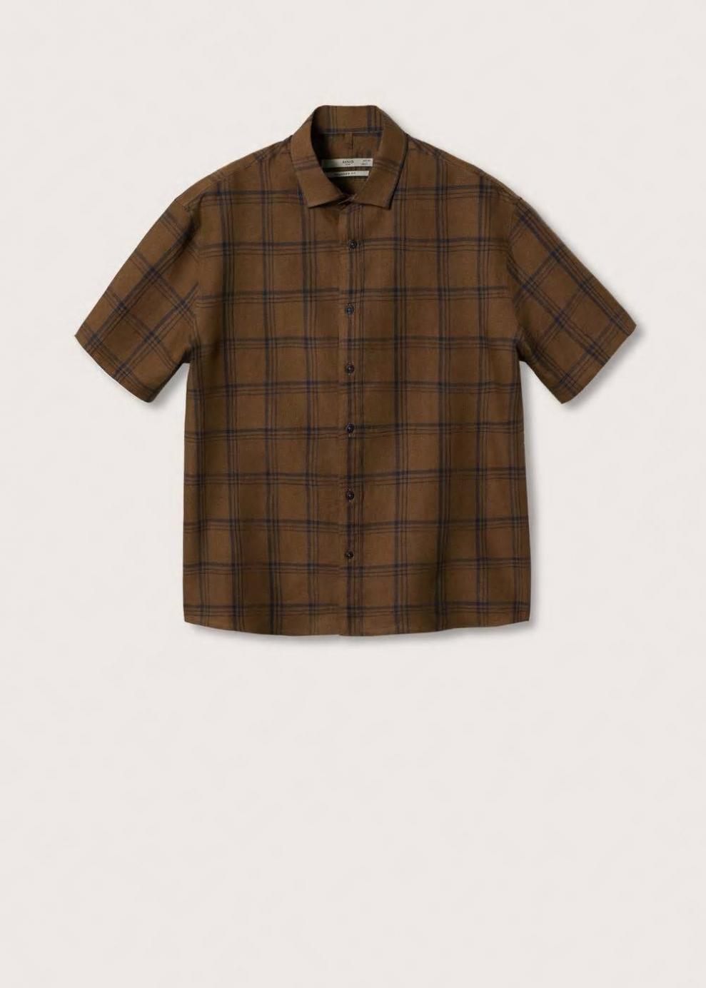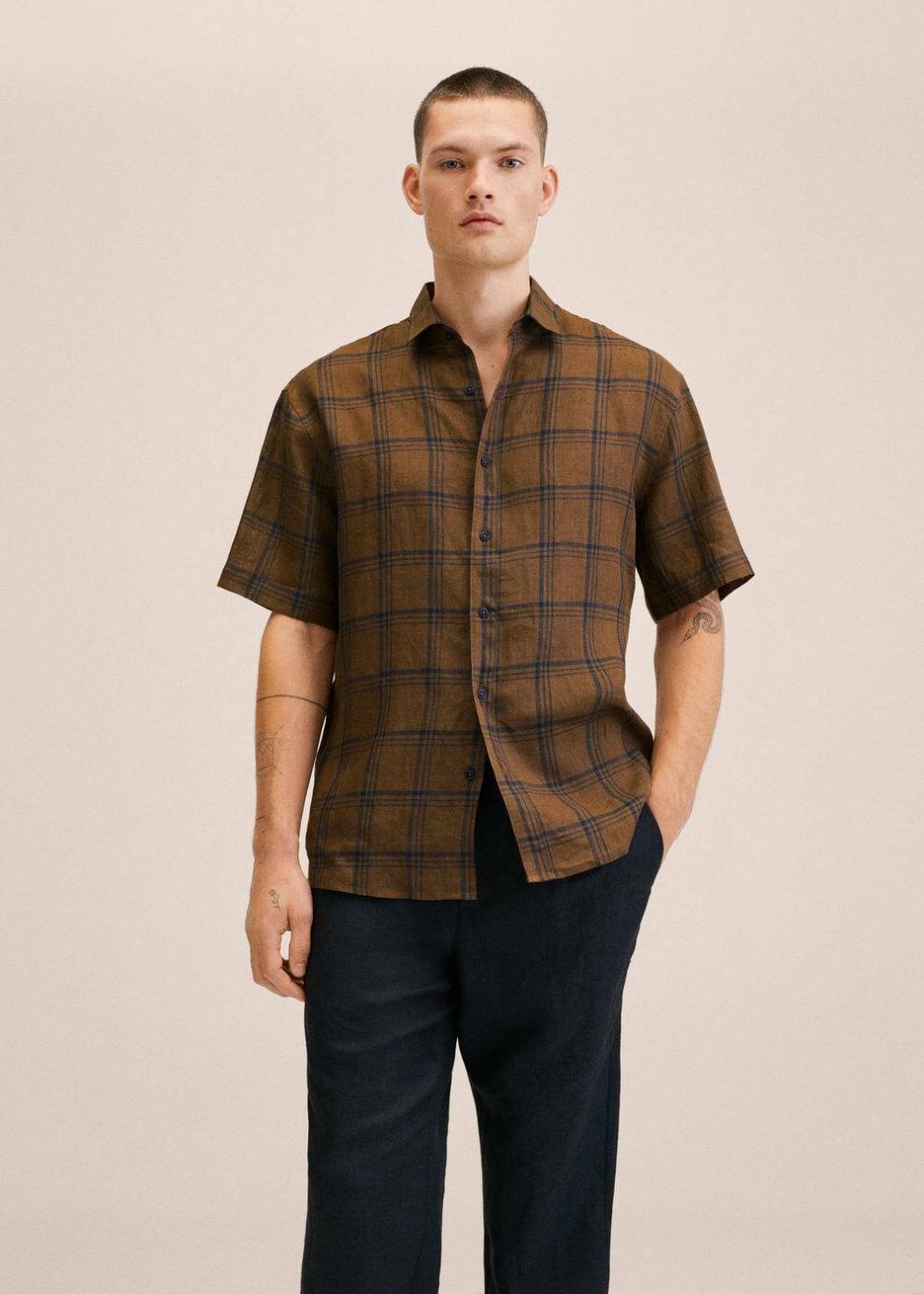 Exclusivo Online Relaxed fit 100% Lino Diseño de cuadros Cuello clásico Manga corta Cierre de botones El modelo mide 187 cm y lleva una talla M Las prendas etiquetadas como Committed son productos que han sido confeccionadas con fibras y/o procesos de producción sostenible, reduciendo así su impacto ambiental. El objetivo de Mango es respaldar la implementación de prácticas más comprometidas con el medio ambiente, aumentando así, el número de prendas sostenibles en su colección.