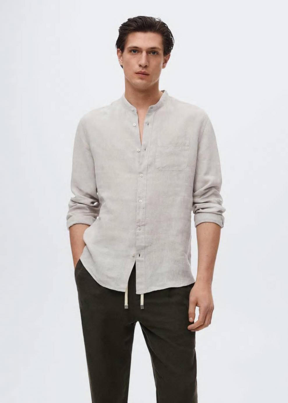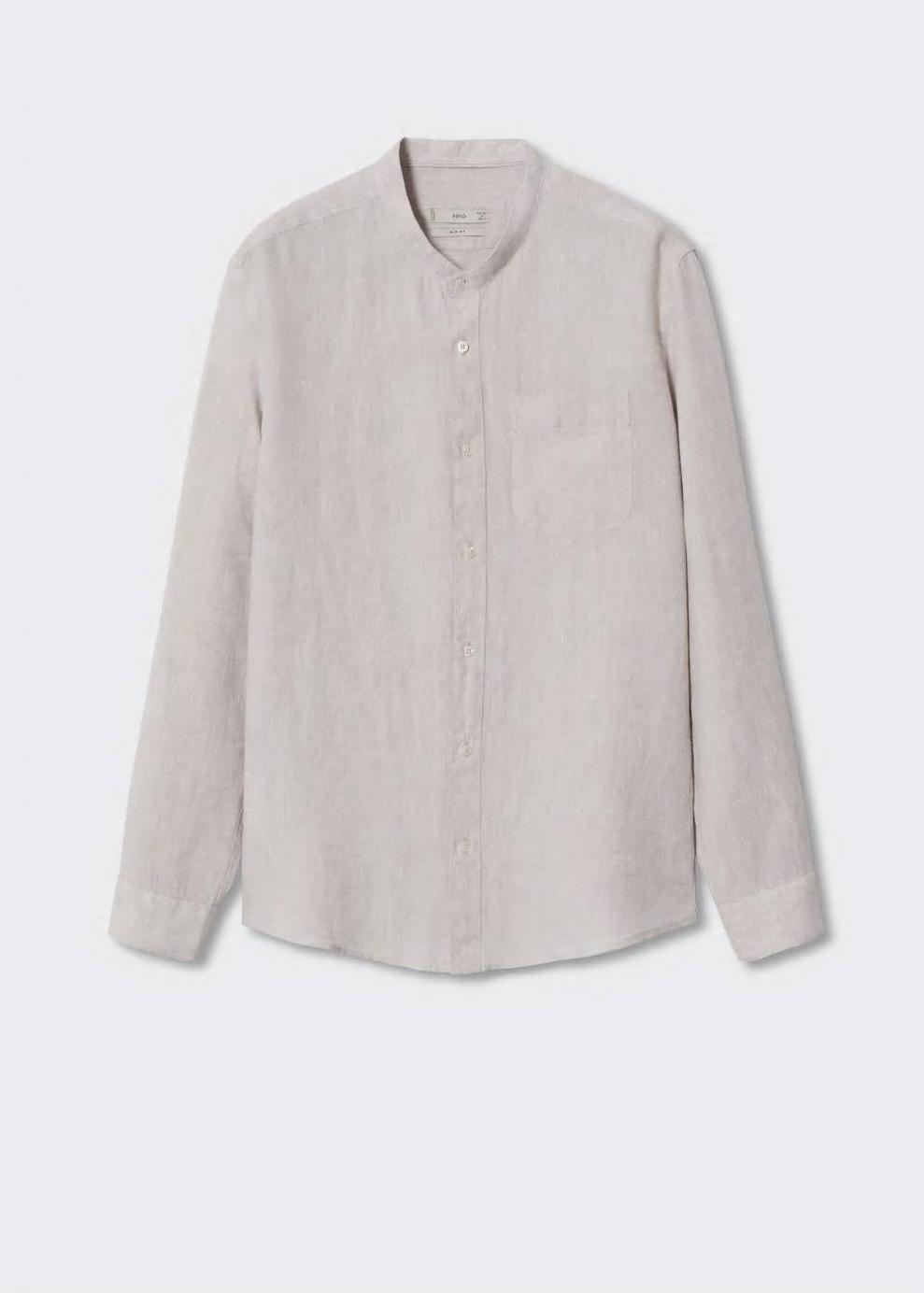 Slim fit 100% Lino Tejido ligero Cuello mao Manga larga Manga larga con puños abotonados Bolsillo de parche en el pecho Cierre de botones El modelo mide 187 cm y lleva una talla M Las prendas etiquetadas como Committed son productos que han sido confeccionadas con fibras y/o procesos de producción sostenible, reduciendo así su impacto ambiental. El objetivo de Mango es respaldar la implementación de prácticas más comprometidas con el medio ambiente, aumentando así, el número de prendas sostenibles en su colección.