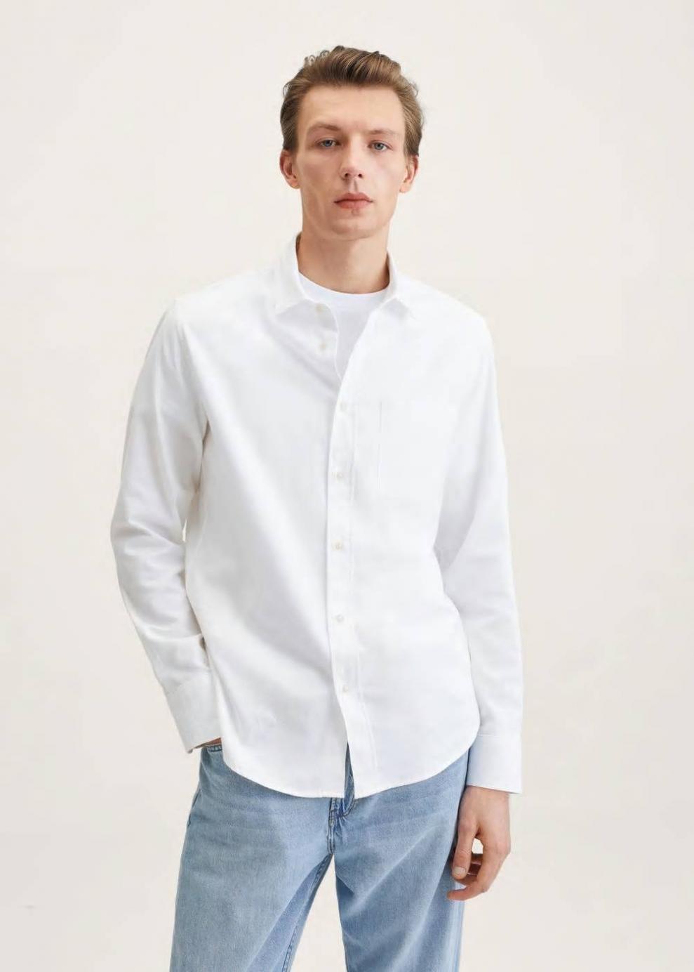 Manga larga Tejido ligero Slim fit Cuello regular Diseño estándar Cierre delantero Tejido de algodón sostenible Cuello clásico Manga larga con puños abotonados Cierre de botones El modelo mide 190 cm y lleva una talla M Las prendas etiquetadas como Committed son productos que han sido confeccionadas con fibras y/o procesos de producción sostenible, reduciendo así su impacto ambiental. El objetivo de Mango es respaldar la implementación de prácticas más comprometidas con el medio ambiente, aumentando así, el número de prendas sostenibles en su colección.