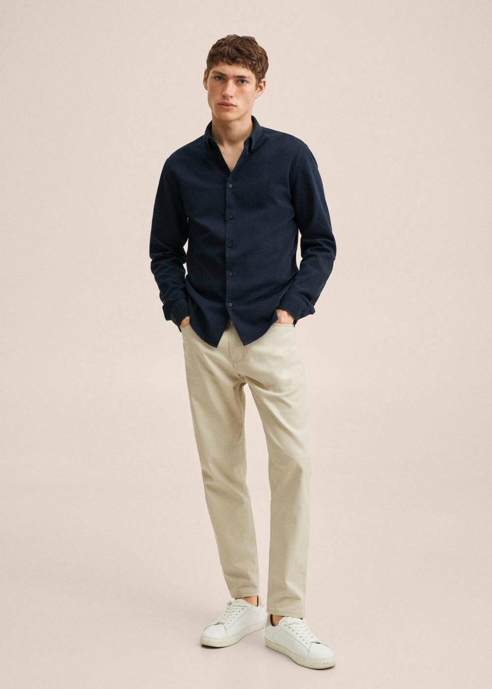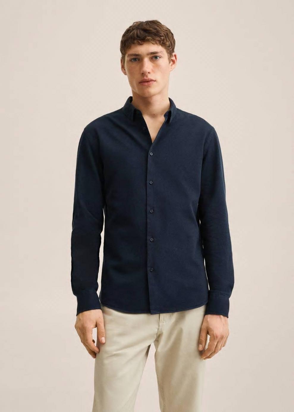 Slim fit Tejido de algodón sostenible Cuello clásico Cierre delantero Manga larga Cierre de botones en la parte delantera El modelo mide 190 cm y lleva…