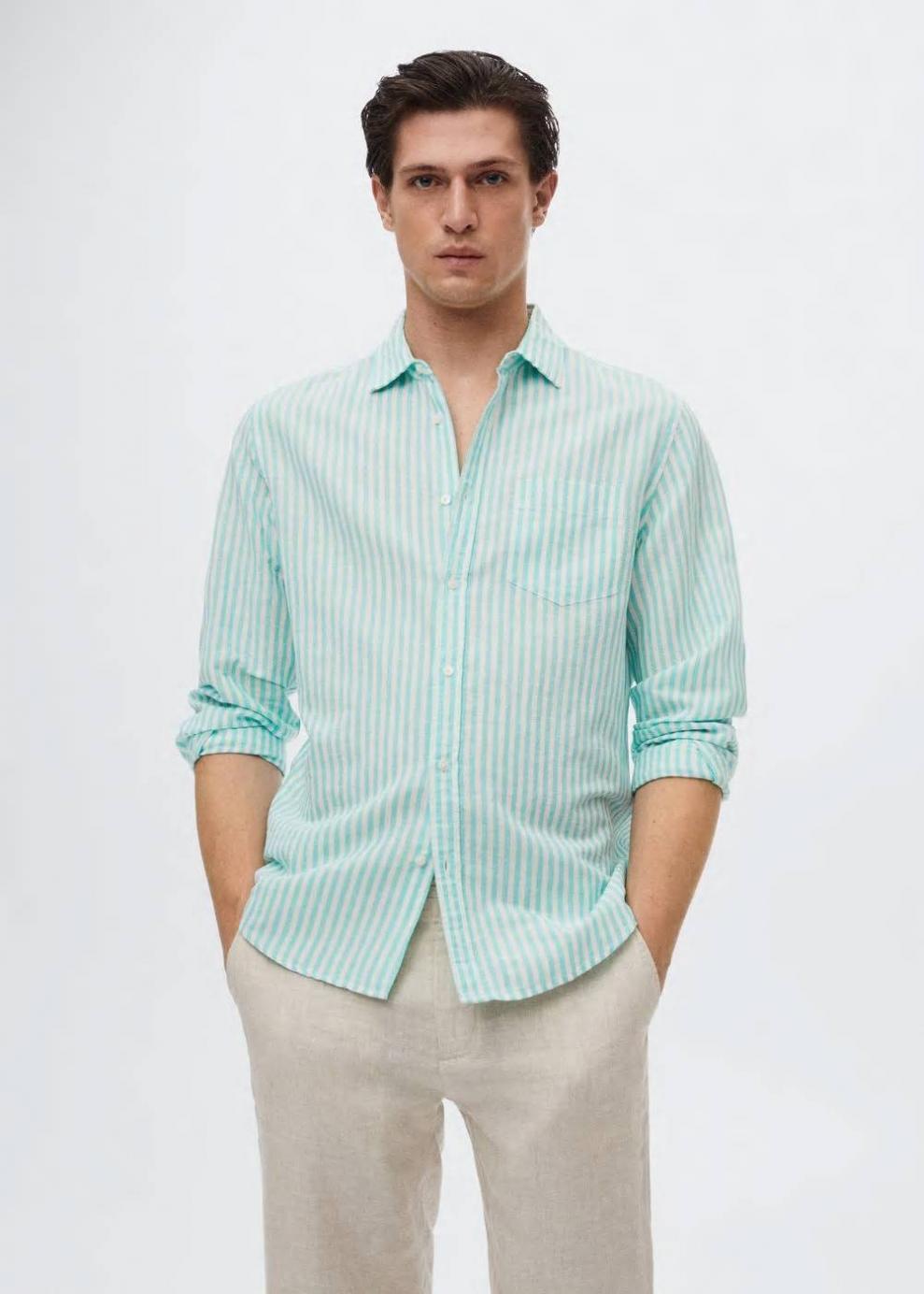 Sé el primero en valorar “Hombre Camisa slim fit lino rayas Verde Agua | Camisas Mango”