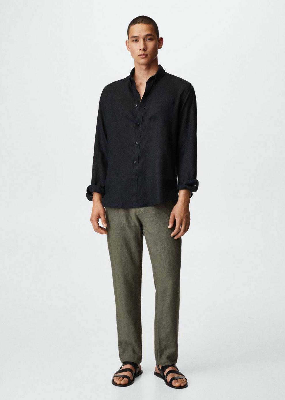 100% Lino Slim fit Cuello clásico Cuello abotonado Manga larga abotonada Cierre de botones en la parte delantera El modelo mide 185 cm y lleva una talla M Las prendas etiquetadas como Committed son productos que han sido confeccionadas con fibras y/o procesos de producción sostenible, reduciendo así su impacto ambiental. El objetivo de Mango es respaldar la implementación de prácticas más comprometidas con el medio ambiente, aumentando así, el número de prendas sostenibles en su colección.