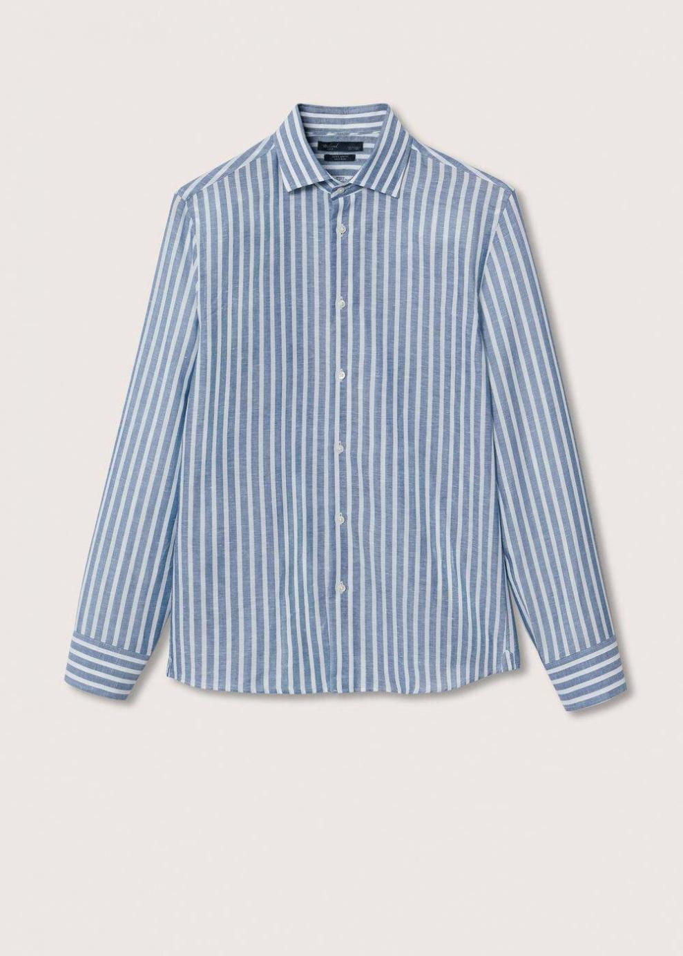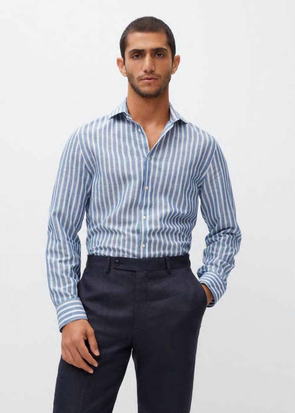 Slim fit Tejido mezcla de algodón y lino Tejido italiano Cuello clásico Manga larga con puños abotonados Cierre de botones El modelo mide 183 cm y lleva una talla M Las prendas etiquetadas como Committed son productos que han sido confeccionadas con fibras y/o procesos de producción sostenible, reduciendo así su impacto ambiental. El objetivo de Mango es respaldar la implementación de prácticas más comprometidas con el medio ambiente, aumentando así, el número de prendas sostenibles en su colección.
