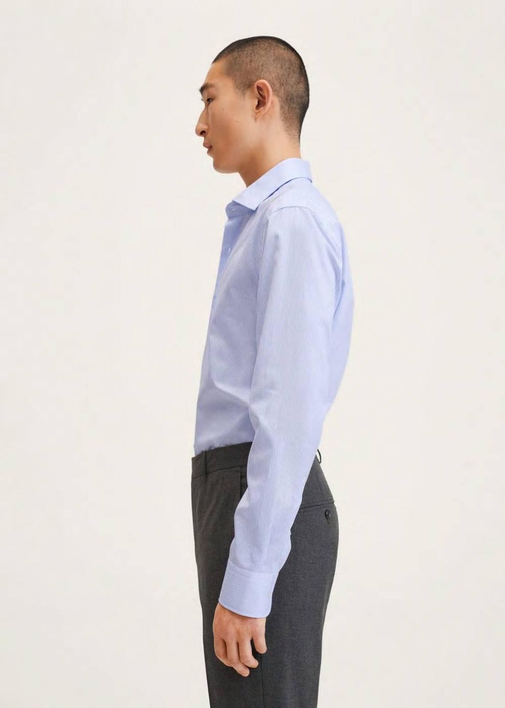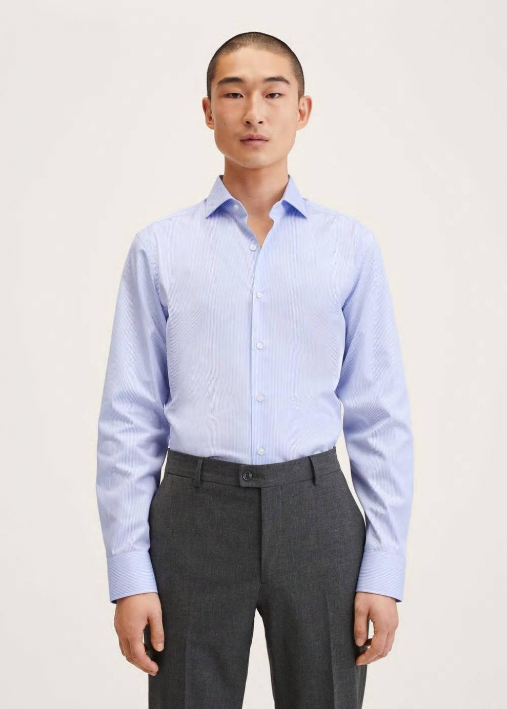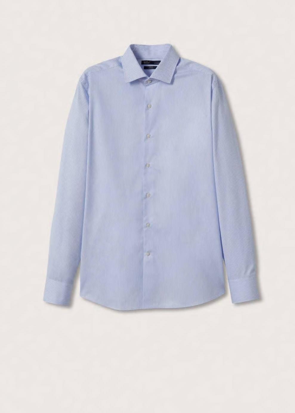 Slim fit 100% Algodón Tejido de algodón sostenible Non-iron (no requiere planchado) Estampado de mil rayas Cuello cutaway Manga larga abotonada Cierre de botones en la parte delantera El modelo mide 183 cm y lleva una talla M Este tejido no requiere planchado.