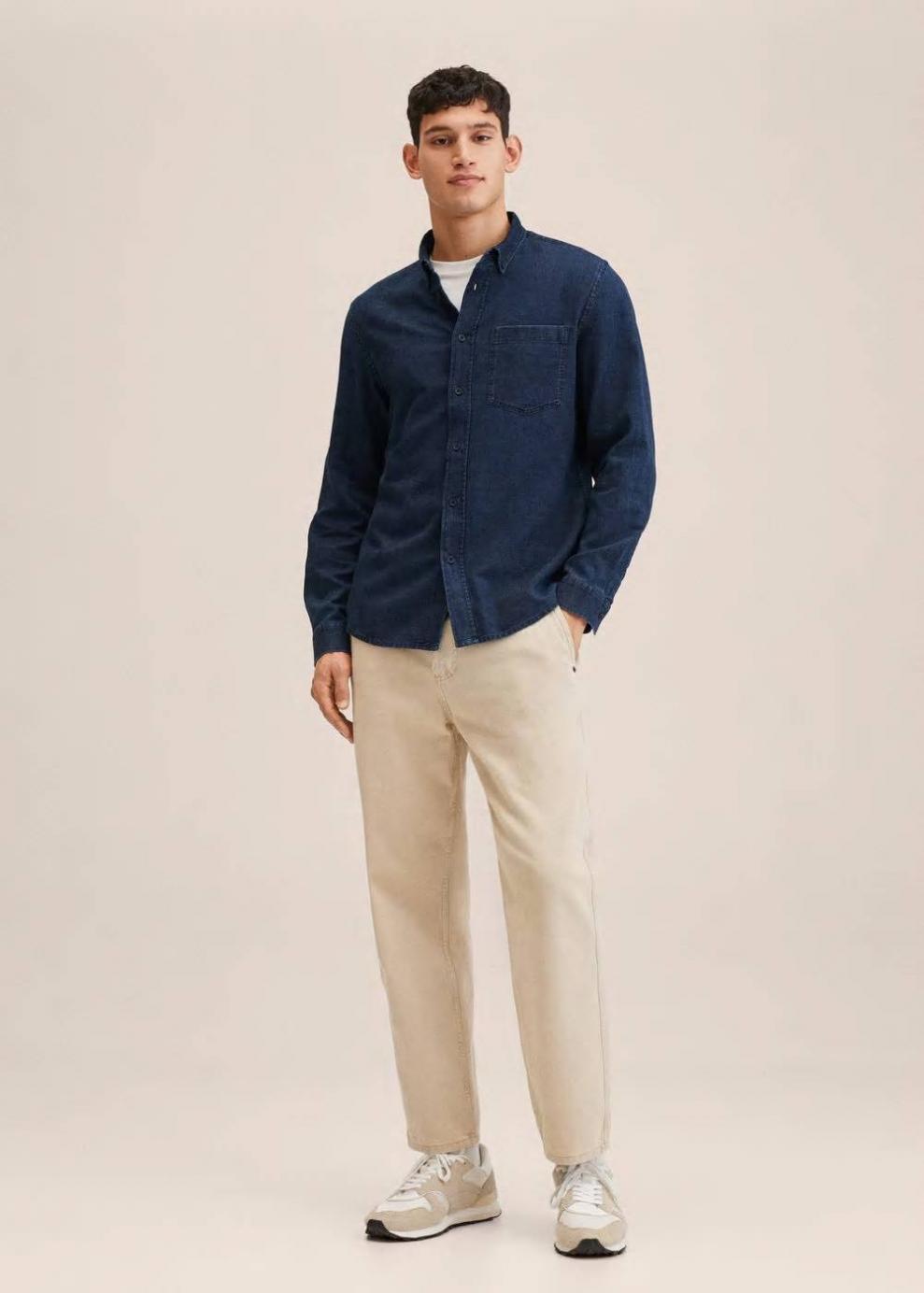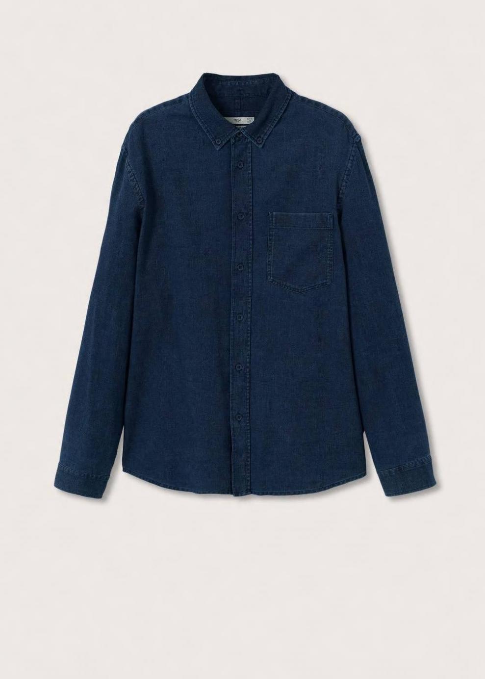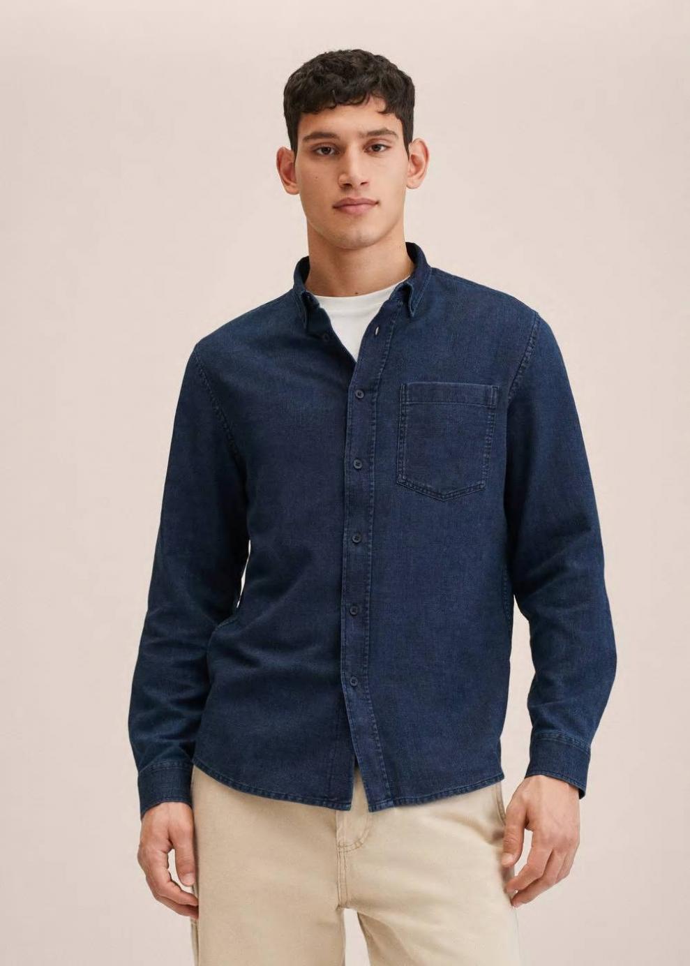 Regular fit Tejido vaquero Tejido de algodón sostenible Lavado oscuro Cuello clásico Manga larga abotonada Bolsillo de parche en el pecho Cierre de botones El modelo mide 187 cm y lleva una talla M Las prendas etiquetadas como Committed son productos que han sido confeccionadas con fibras y/o procesos de producción sostenible, reduciendo así su impacto ambiental. El objetivo de Mango es respaldar la implementación de prácticas más comprometidas con el medio ambiente, aumentando así, el número de prendas sostenibles en su colección.