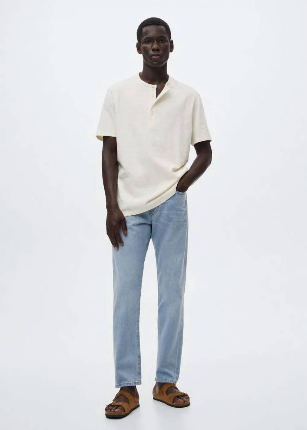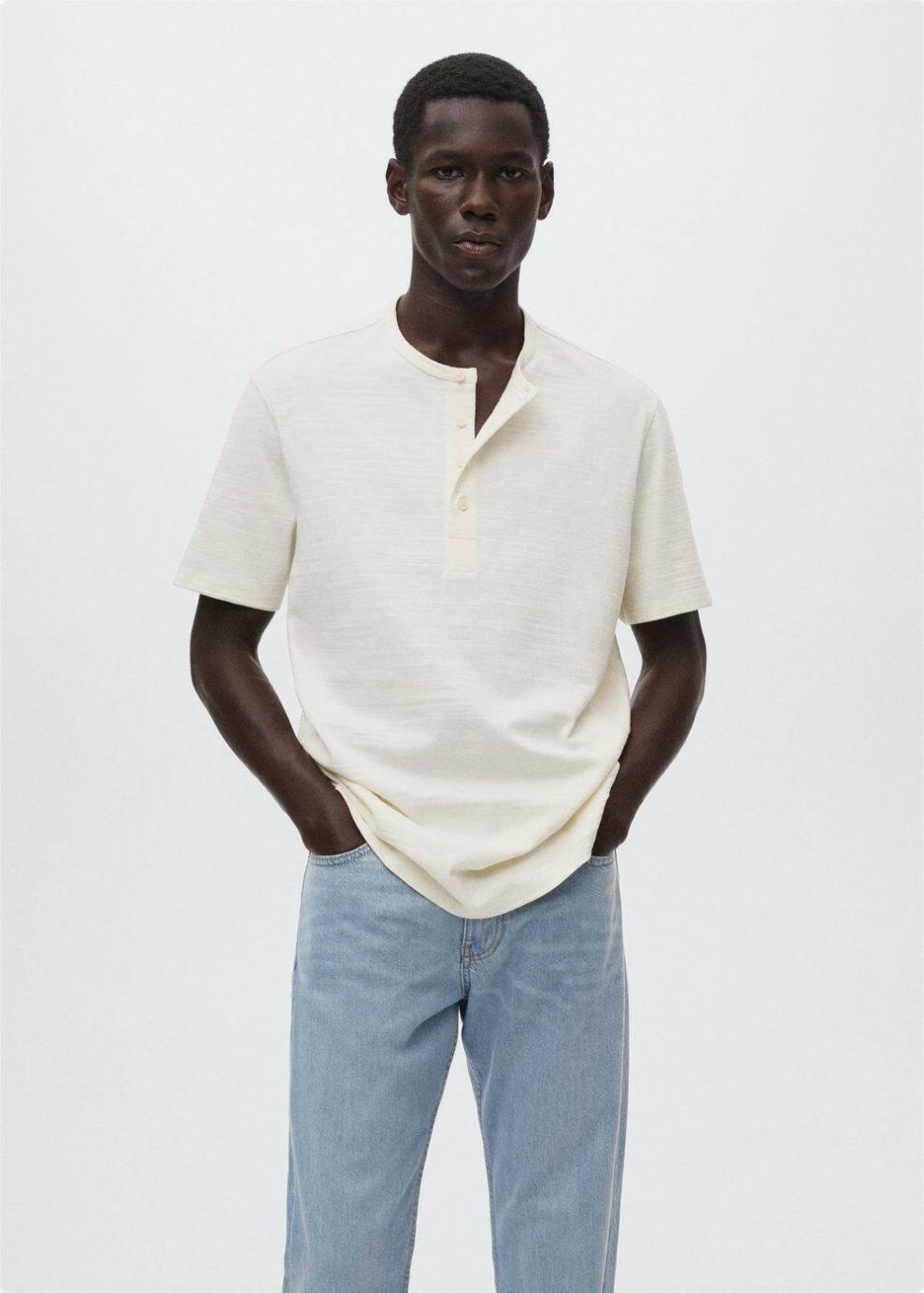 Regular fit Tejido mezcla de algodón sostenible Cuello panadero Manga corta El modelo mide 187 cm y lleva una talla M Las prendas etiquetadas como Committed son productos que han sido confeccionadas con fibras y/o procesos de producción sostenible, reduciendo así su impacto ambiental. El objetivo de Mango es respaldar la implementación de prácticas más comprometidas con el medio ambiente, aumentando así, el número de prendas sostenibles en su colección.