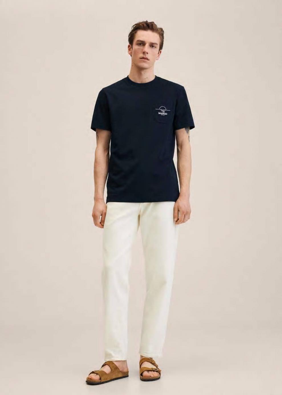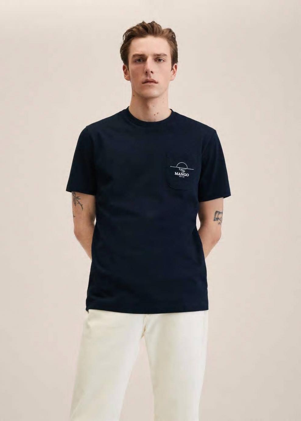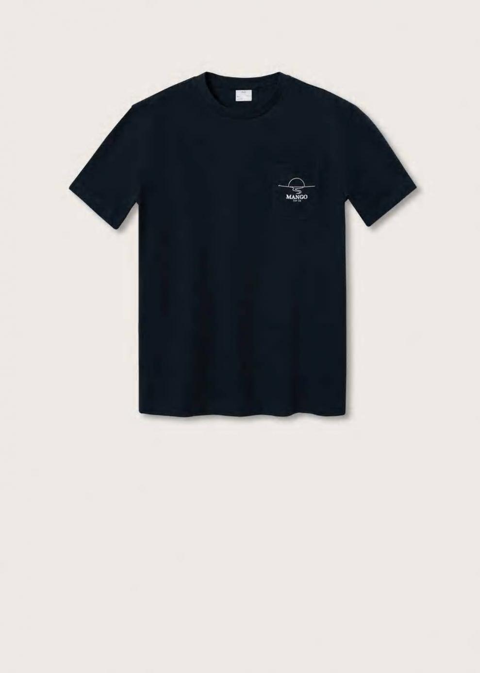 Tejido de algodón sostenible Bolsillo de parche Logo bordado en el bolsillo Cuello redondo Manga corta El modelo mide 187 cm y lleva una talla M Las prendas etiquetadas como Committed son productos que han sido confeccionadas con fibras y/o procesos de producción sostenible, reduciendo así su impacto ambiental. El objetivo de Mango es respaldar la implementación de prácticas más comprometidas con el medio ambiente, aumentando así, el número de prendas sostenibles en su colección.