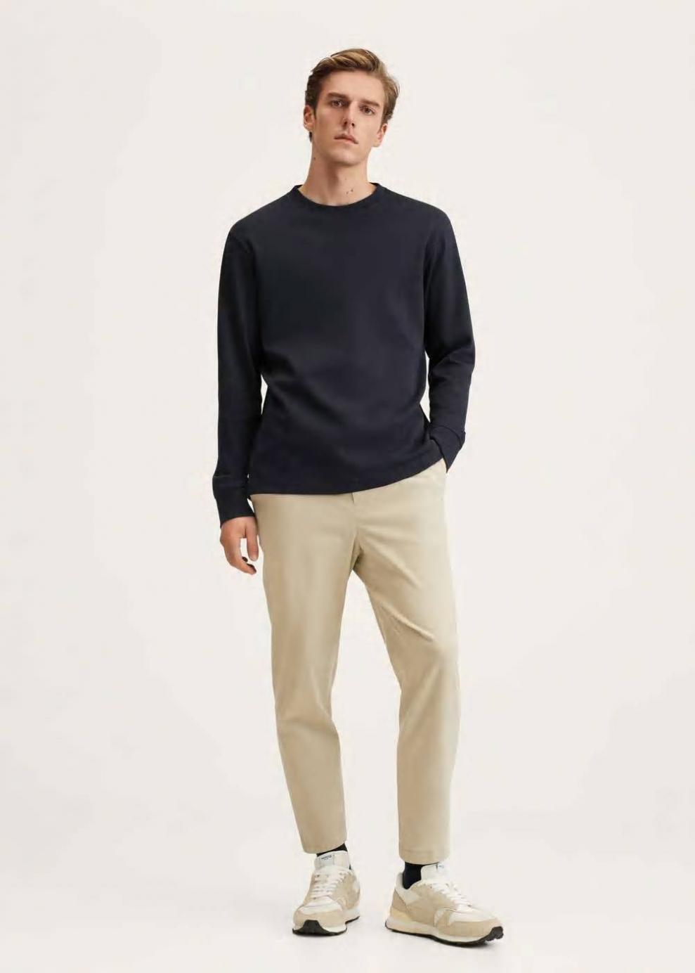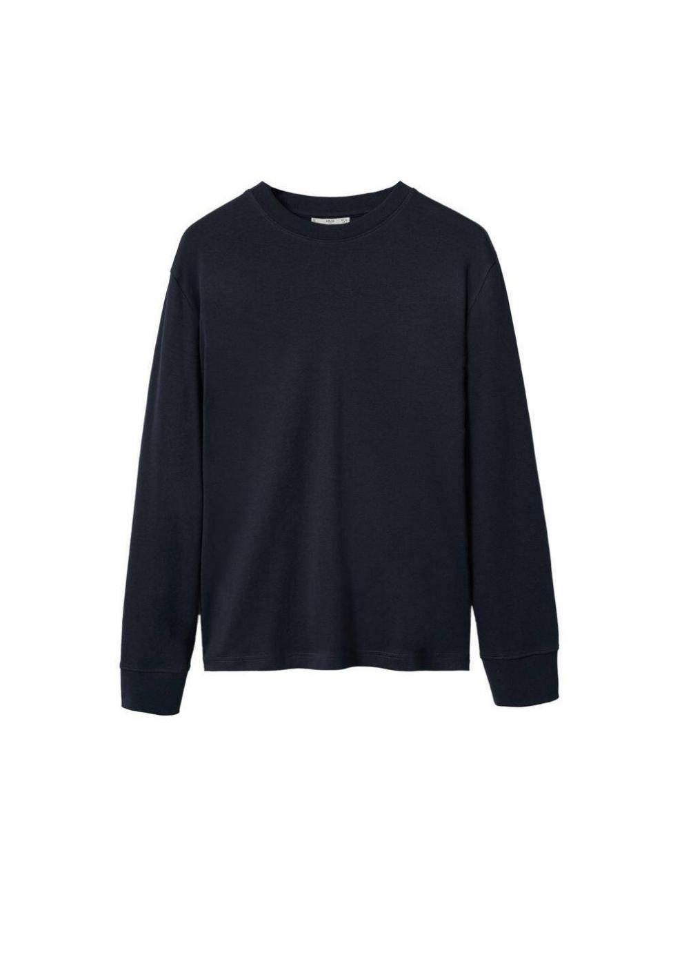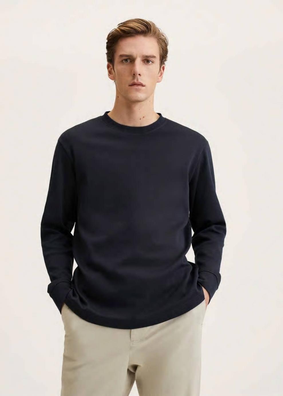 Regular fit Tejido de algodón sostenible Cuello redondo Manga larga con puños elásticos El modelo mide 187 cm y lleva una talla M Las prendas etiquetadas como Committed son productos que han sido confeccionadas con fibras y/o procesos de producción sostenible, reduciendo así su impacto ambiental. El objetivo de Mango es respaldar la implementación de prácticas más comprometidas con el medio ambiente, aumentando así, el número de prendas sostenibles en su colección.