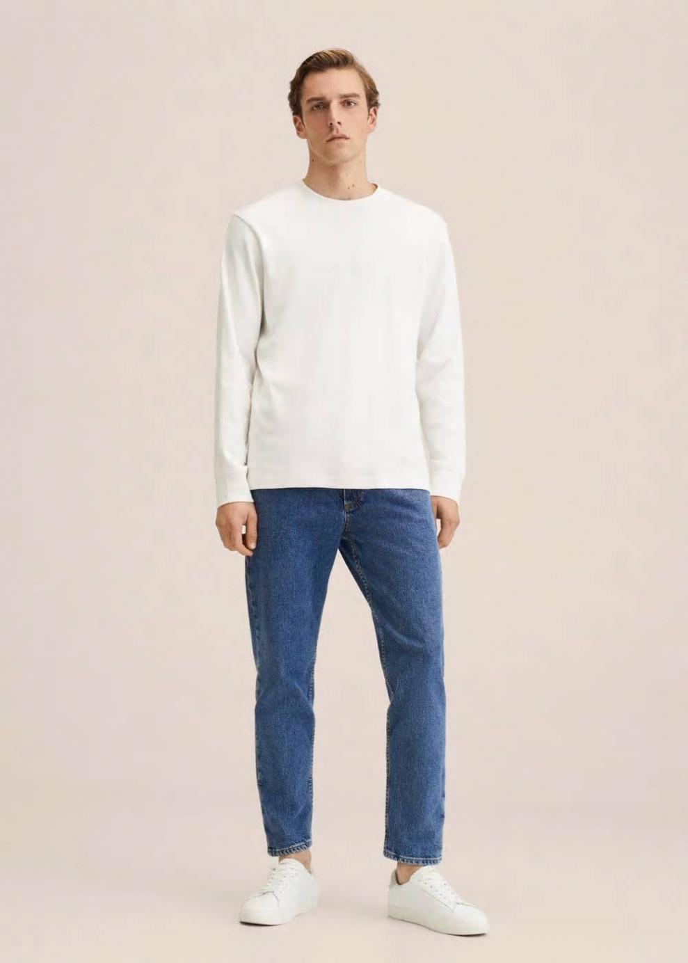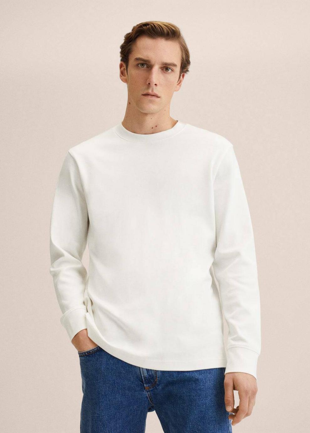 Hombre Camiseta algodón manga larga Blanco Roto | Camisetas Mango