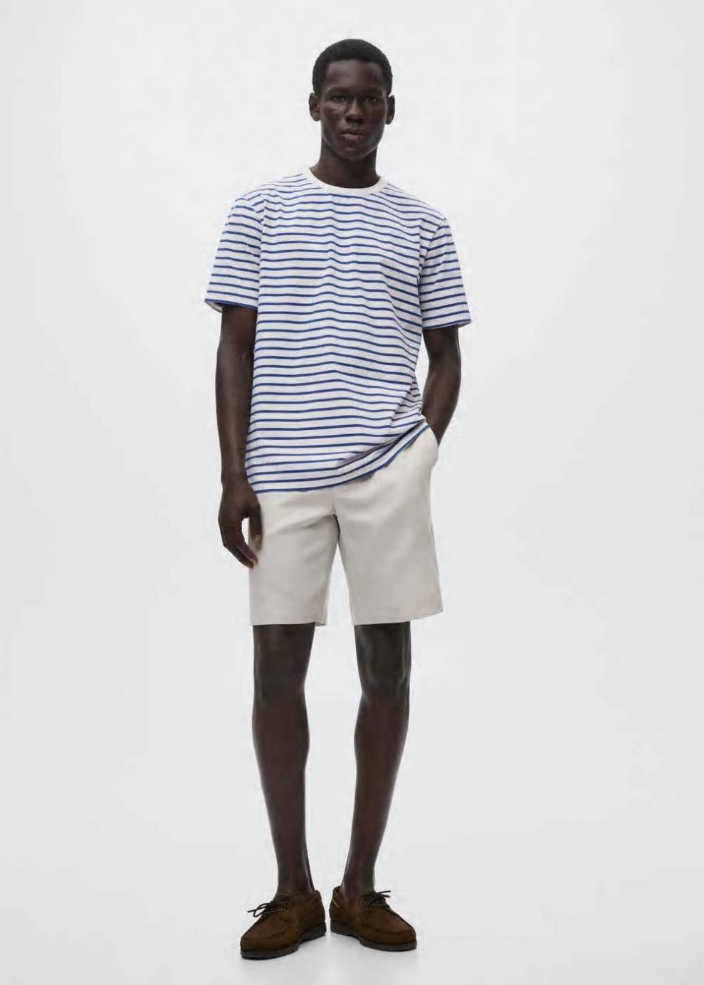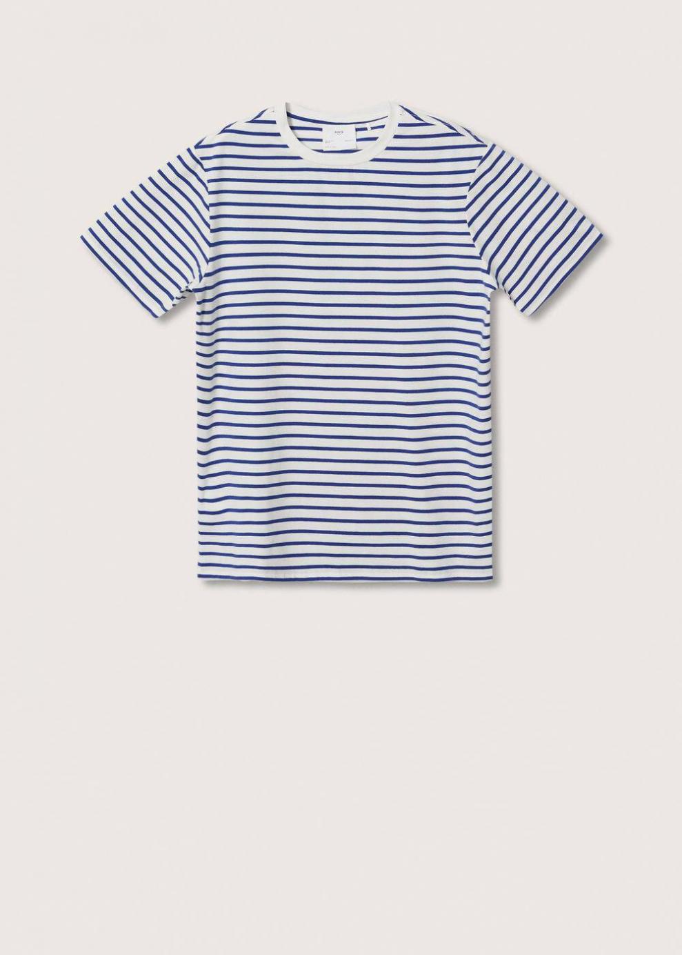 Regular fit Diseño de rayas Tejido mezcla de algodón Cuello redondo Manga corta El modelo mide 183 cm y lleva una talla M Las prendas etiquetadas como Committed son productos que han sido confeccionadas con fibras y/o procesos de producción sostenible, reduciendo así su impacto ambiental. El objetivo de Mango es respaldar la implementación de prácticas más comprometidas con el medio ambiente, aumentando así, el número de prendas sostenibles en su colección.