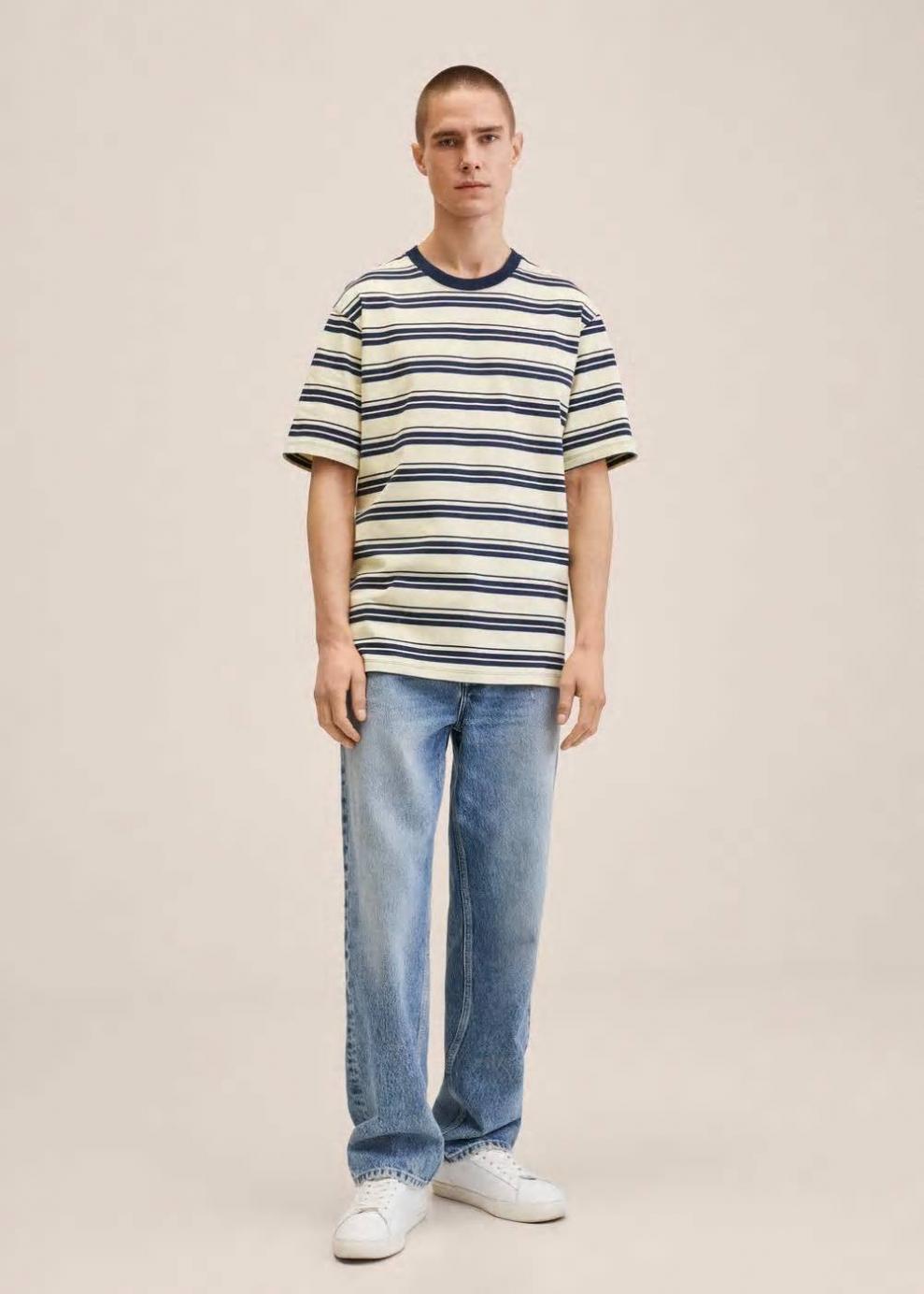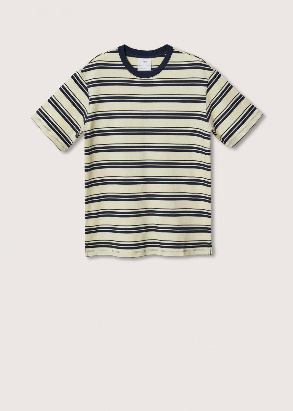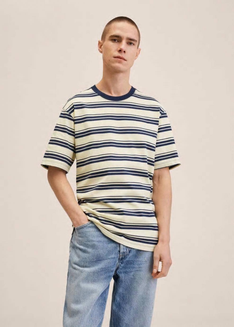 Diseño de rayas Regular fit Tejido de algodón sostenible Cuello redondo Manga corta El modelo mide 183 cm y lleva una talla M Las prendas etiquetadas como Committed son productos que han sido confeccionadas con fibras y/o procesos de producción sostenible, reduciendo así su impacto ambiental. El objetivo de Mango es respaldar la implementación de prácticas más comprometidas con el medio ambiente, aumentando así, el número de prendas sostenibles en su colección.