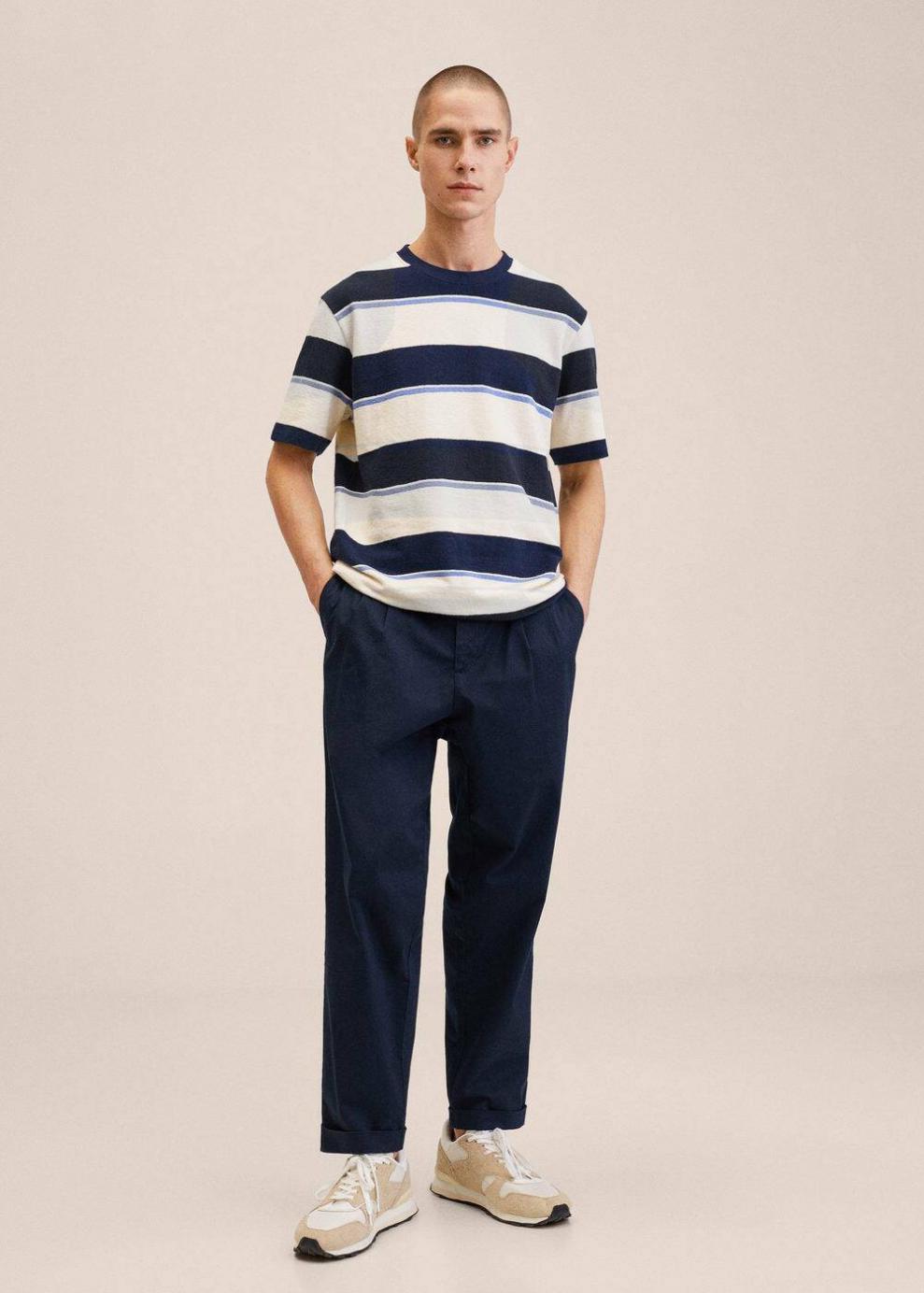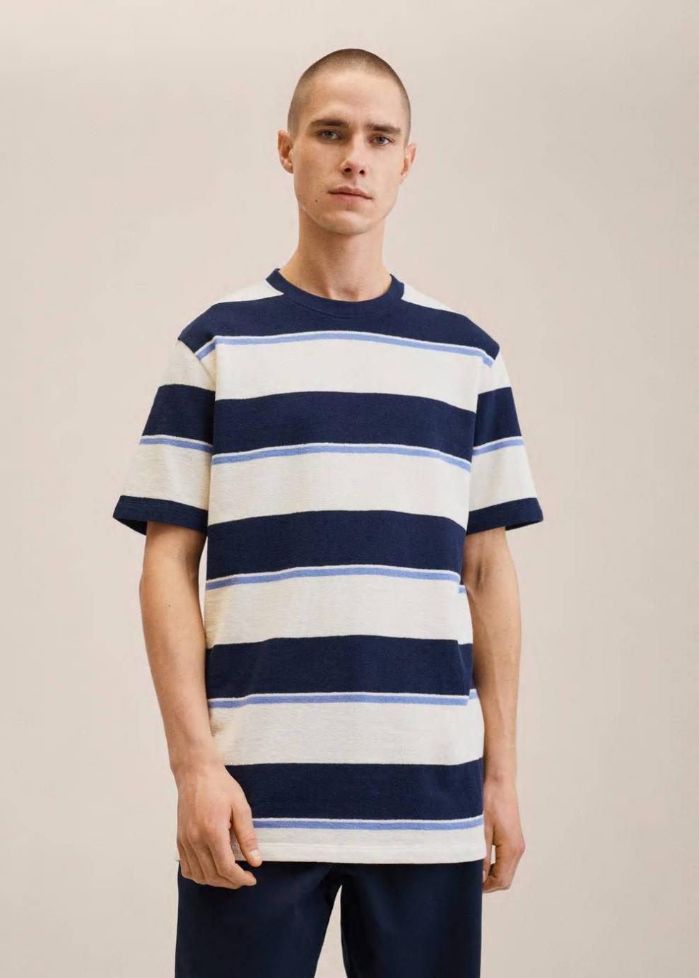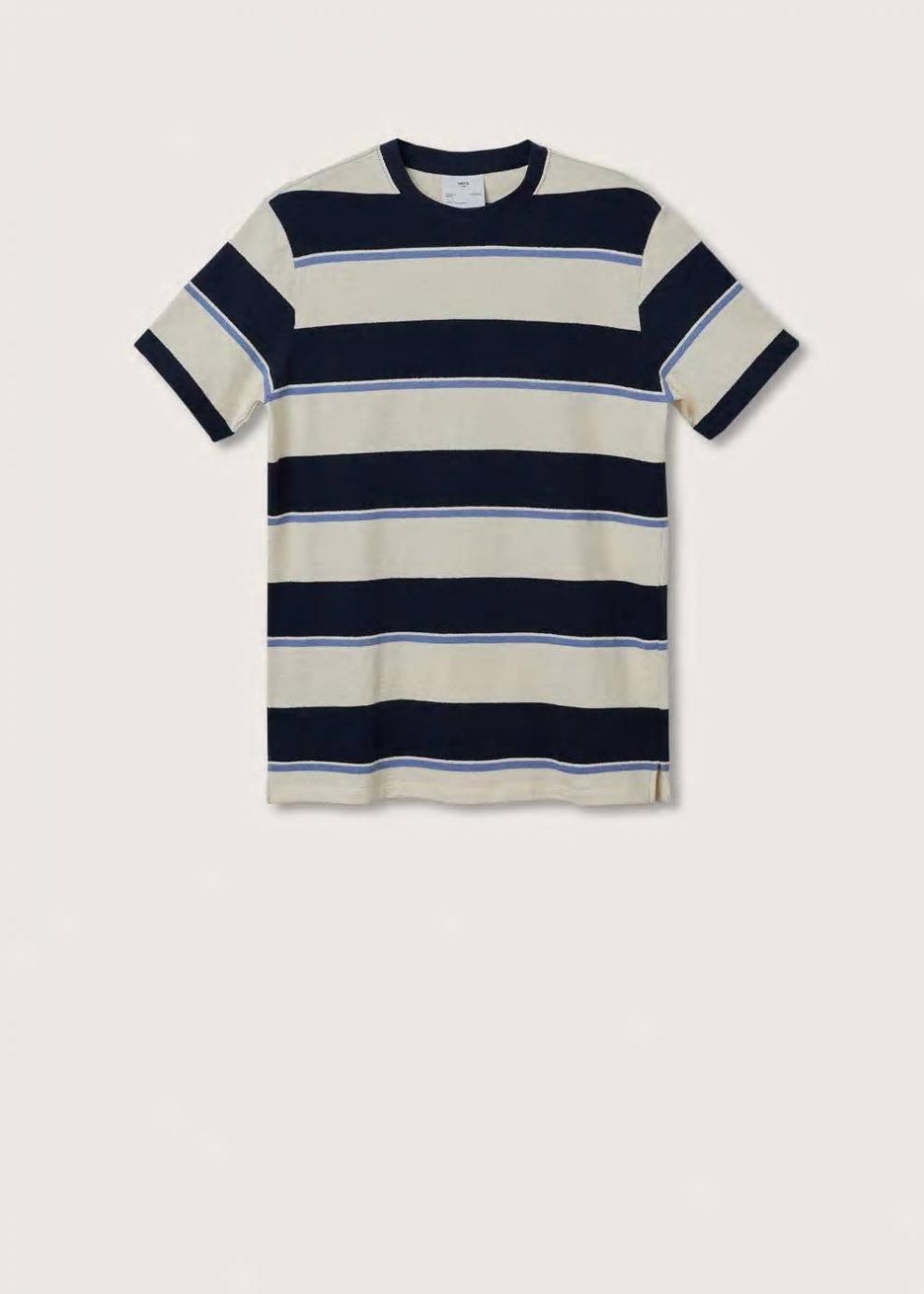 Diseño de rayas Regular fit Tejido de algodón sostenible Cuello redondo Manga corta El modelo mide 183 cm y lleva una talla M Las prendas etiquetadas como Committed son productos que han sido confeccionadas con fibras y/o procesos de producción sostenible, reduciendo así su impacto ambiental. El objetivo de Mango es respaldar la implementación de prácticas más comprometidas con el medio ambiente, aumentando así, el número de prendas sostenibles en su colección.
