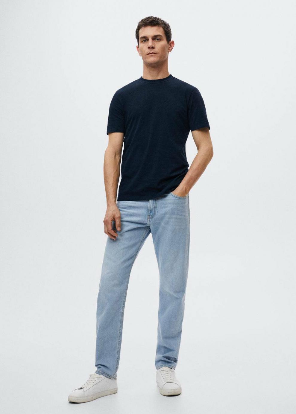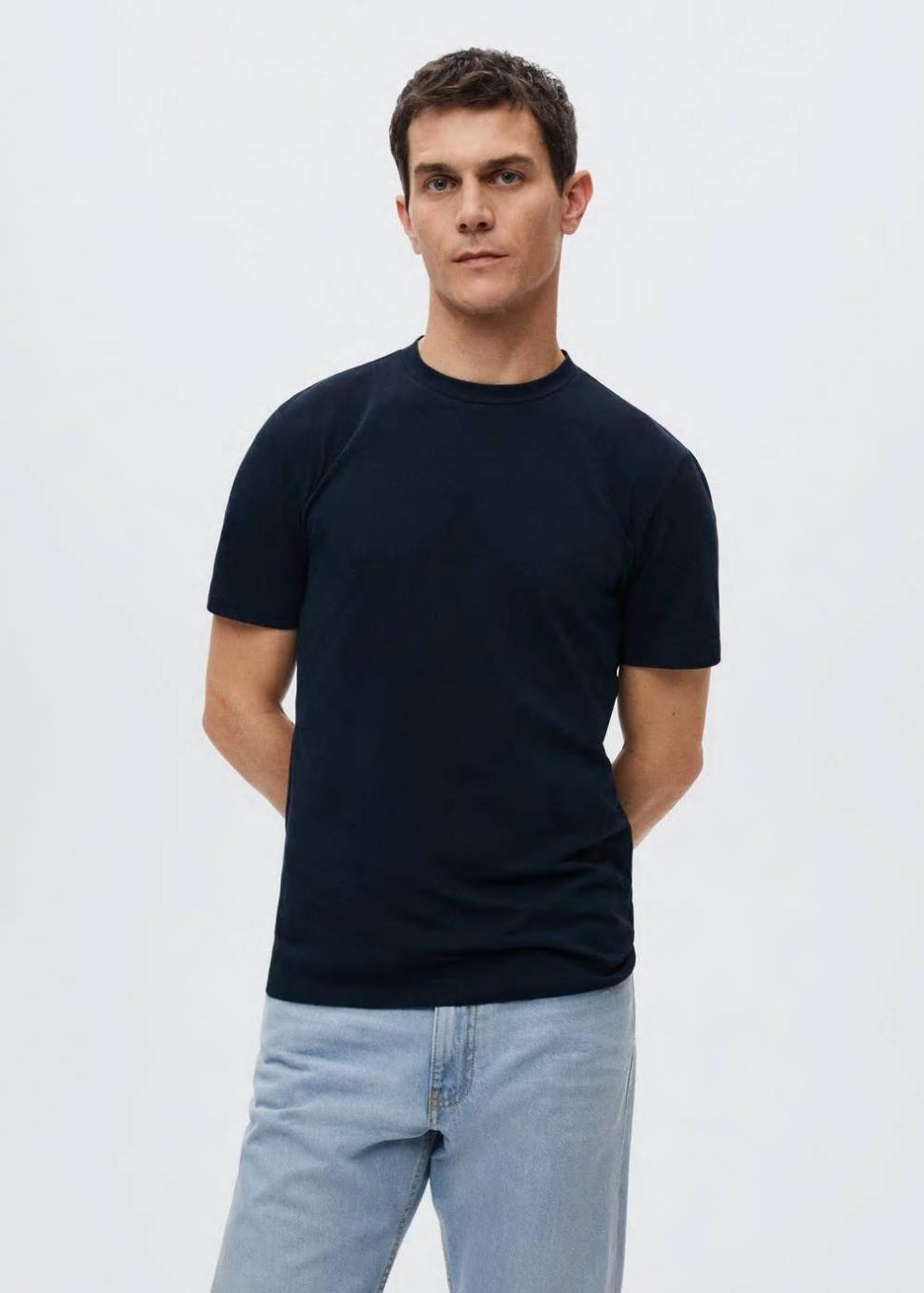 Slim fit Tejido de algodón stretch Cuello redondo Manga corta El modelo mide 183 cm y lleva una talla M Las prendas etiquetadas como Committed son productos que han sido confeccionadas con fibras y/o procesos de producción sostenible, reduciendo así su impacto ambiental. El objetivo de Mango es respaldar la implementación de prácticas más comprometidas con el medio ambiente, aumentando así, el número de prendas sostenibles en su colección.