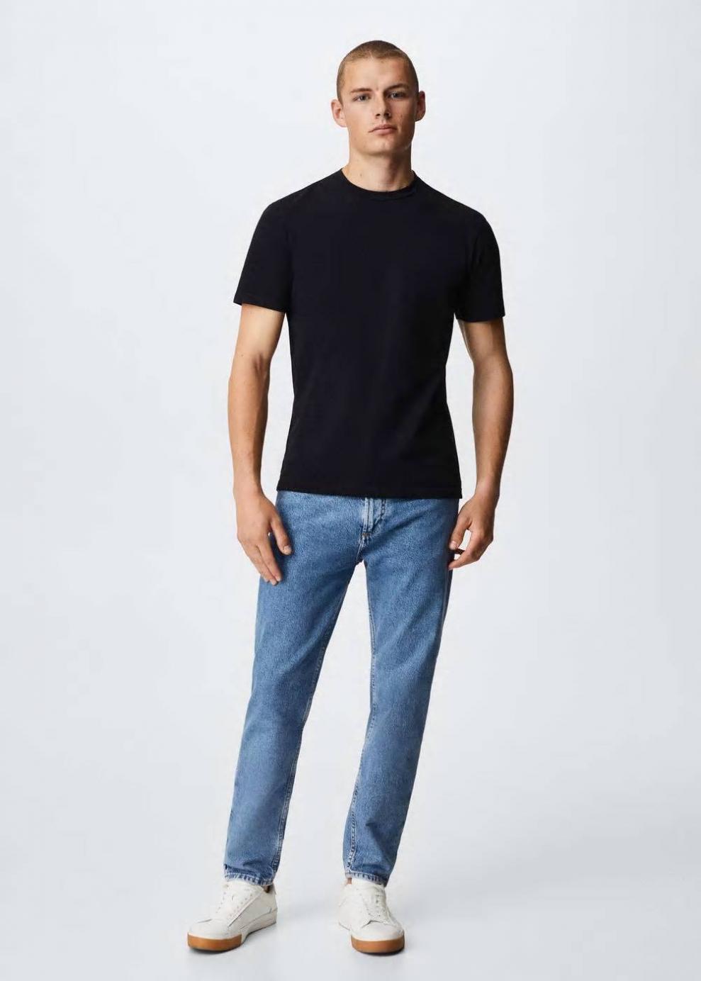 Slim fit Tejido de algodón stretch Cuello redondo Manga corta El modelo mide 183 cm y lleva una talla M Las prendas etiquetadas como Committed son productos que han sido confeccionadas con fibras y/o procesos de producción sostenible, reduciendo así su impacto ambiental. El objetivo de Mango es respaldar la implementación de prácticas más comprometidas con el medio ambiente, aumentando así, el número de prendas sostenibles en su colección.