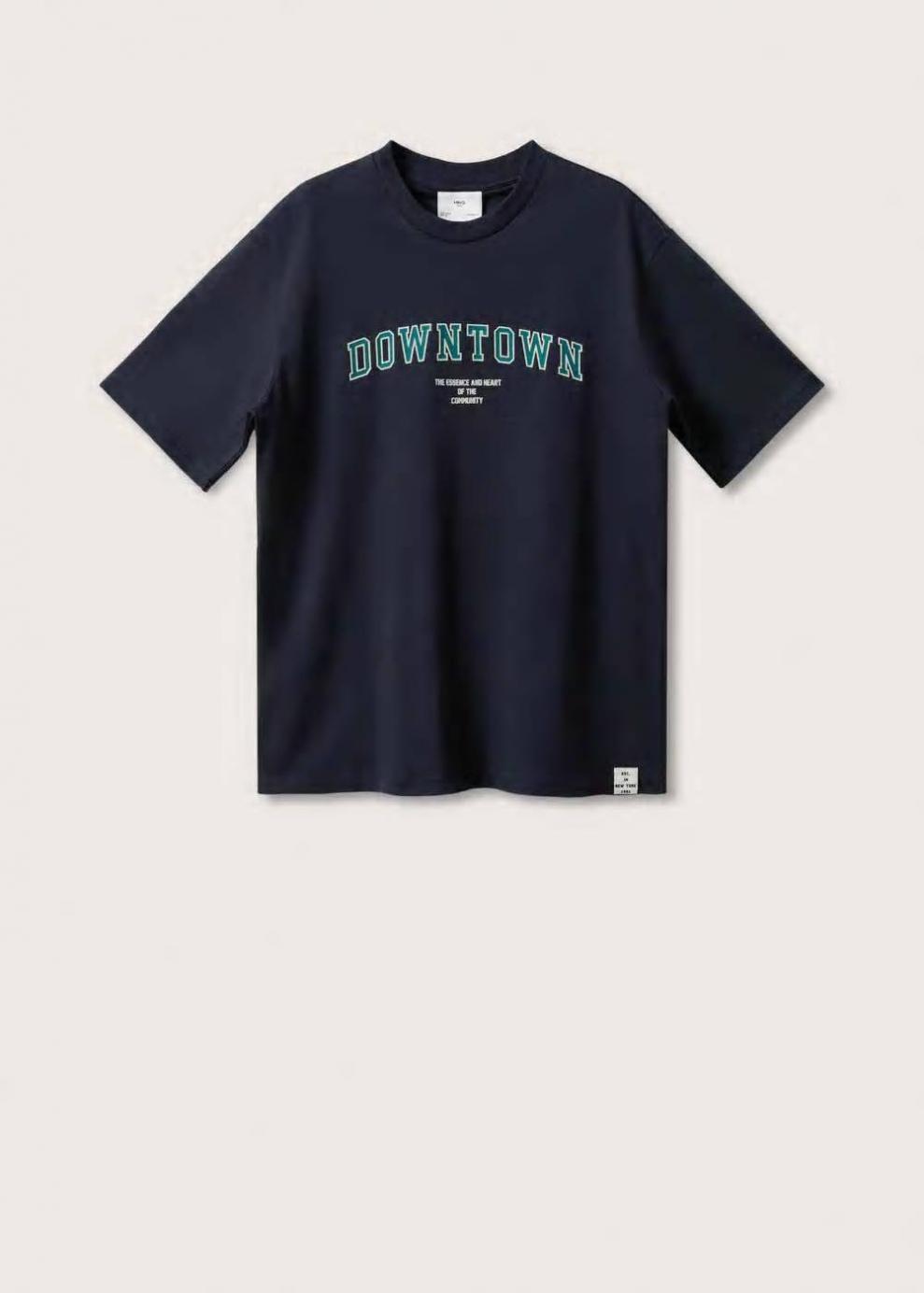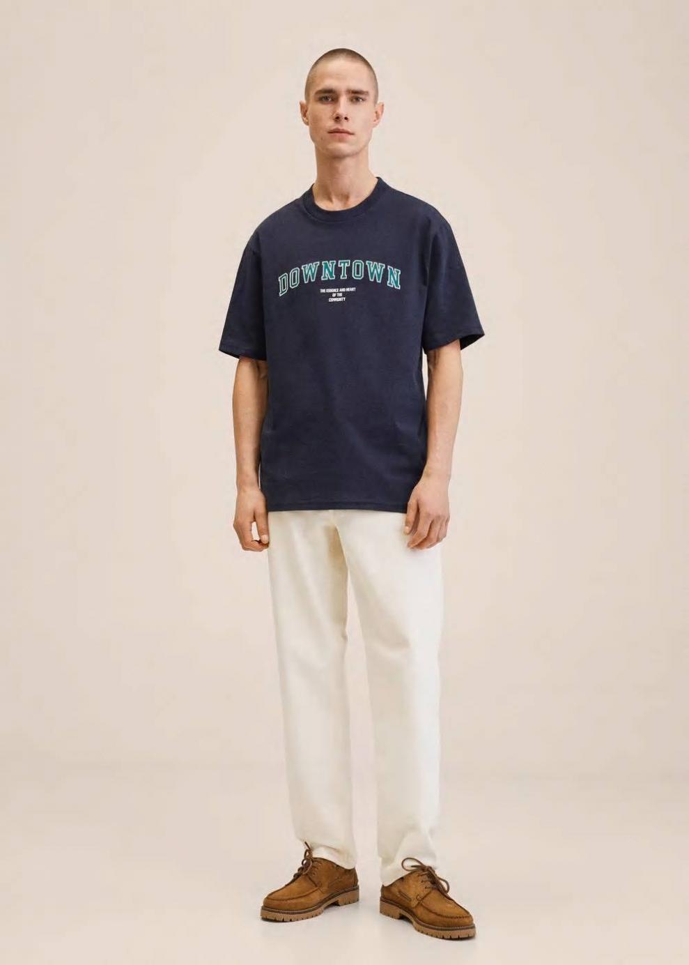Diseño varsity Regular fit Tejido de algodón sostenible Cuello redondo Manga corta Diseño estampado en…