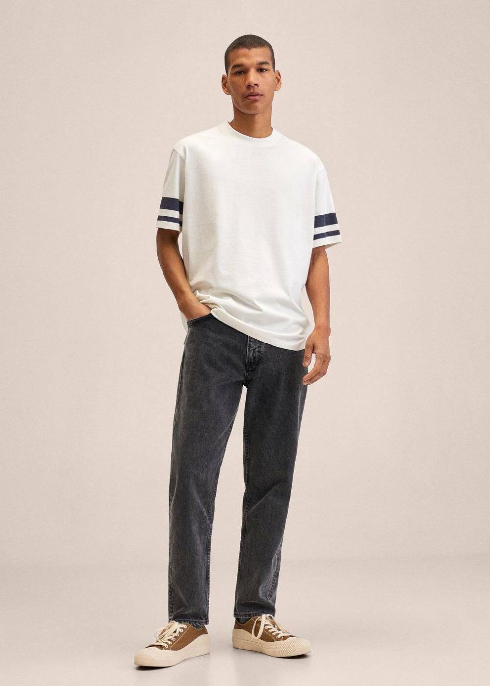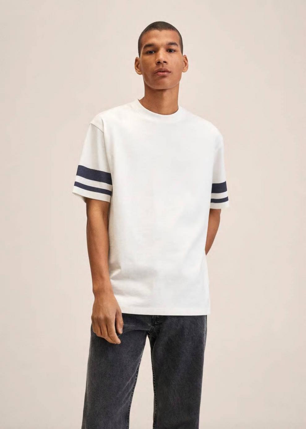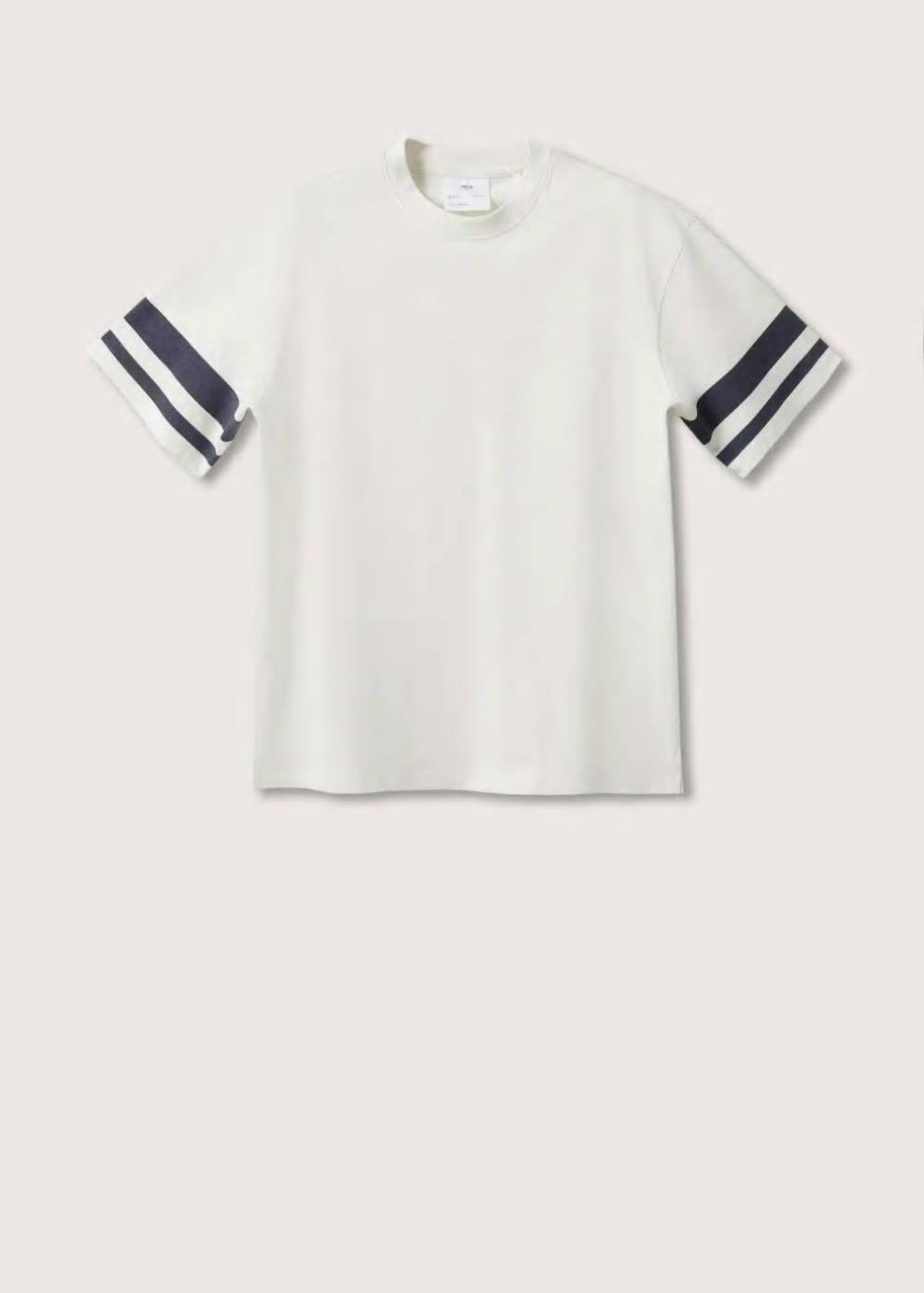 Regular fit Diseño de rayas en la manga Tejido ligero Tejido de algodón sostenible Cuello redondo Manga corta El modelo mide 183 cm y lleva una talla M Las prendas etiquetadas como Committed son productos que han sido confeccionadas con fibras y/o procesos de producción sostenible, reduciendo así su impacto ambiental. El objetivo de Mango es respaldar la implementación de prácticas más comprometidas con el medio ambiente, aumentando así, el número de prendas sostenibles en su colección.