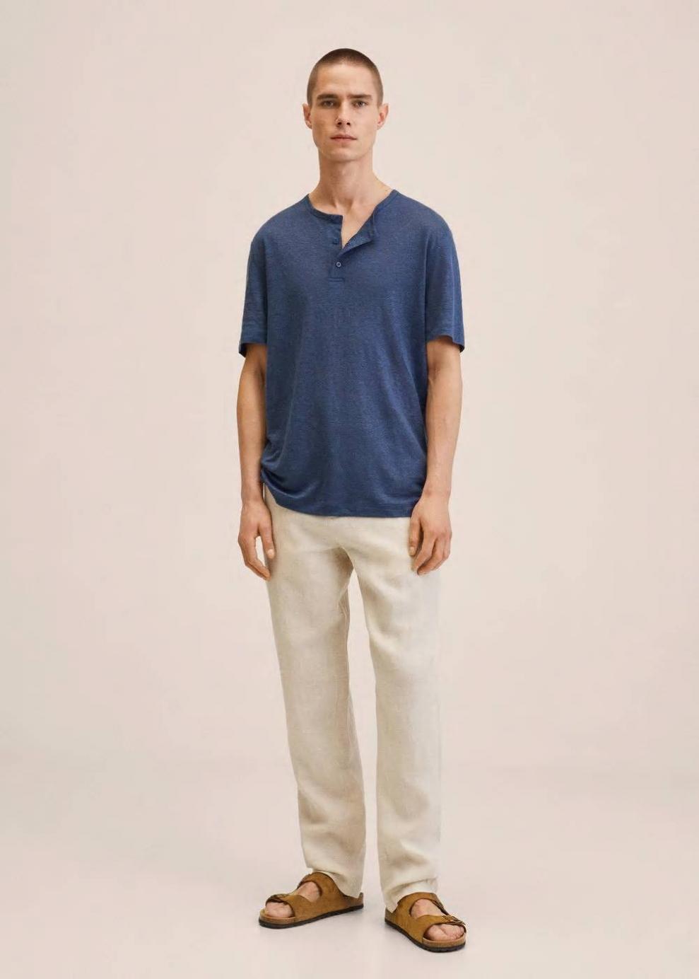 Slim fit 100% Lino Tejido ligero Cuello panadero Manga corta El modelo mide 183 cm y lleva una talla M Las prendas etiquetadas como Committed son productos que han sido confeccionadas con fibras y/o procesos de producción sostenible, reduciendo así su impacto ambiental. El objetivo de Mango es respaldar la implementación de prácticas más comprometidas con el medio ambiente, aumentando así, el número de prendas sostenibles en su colección.