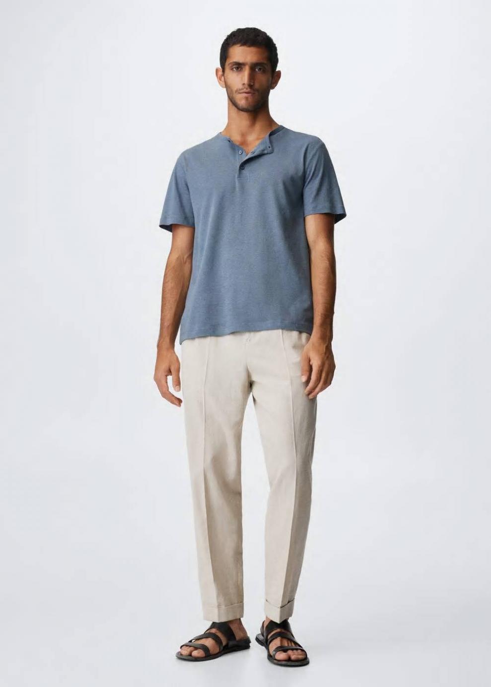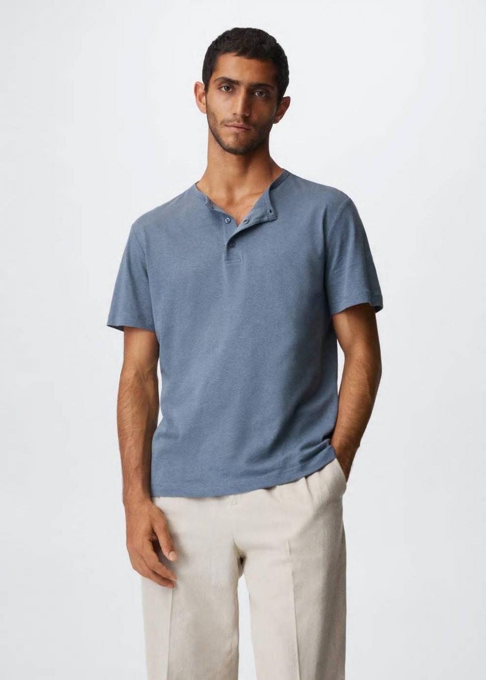 Slim fit Tejido mezcla de algodón y lino Cuello panadero Manga corta El modelo mide 183 cm y lleva una talla M Las prendas etiquetadas como Committed son productos que han sido confeccionadas con fibras y/o procesos de producción sostenible, reduciendo así su impacto ambiental. El objetivo de Mango es respaldar la implementación de prácticas más comprometidas con el medio ambiente, aumentando así, el número de prendas sostenibles en su colección.