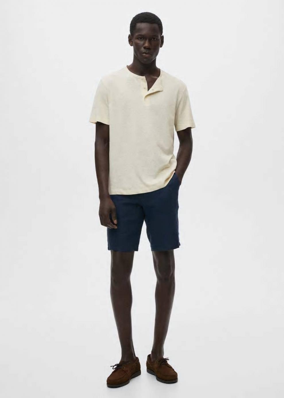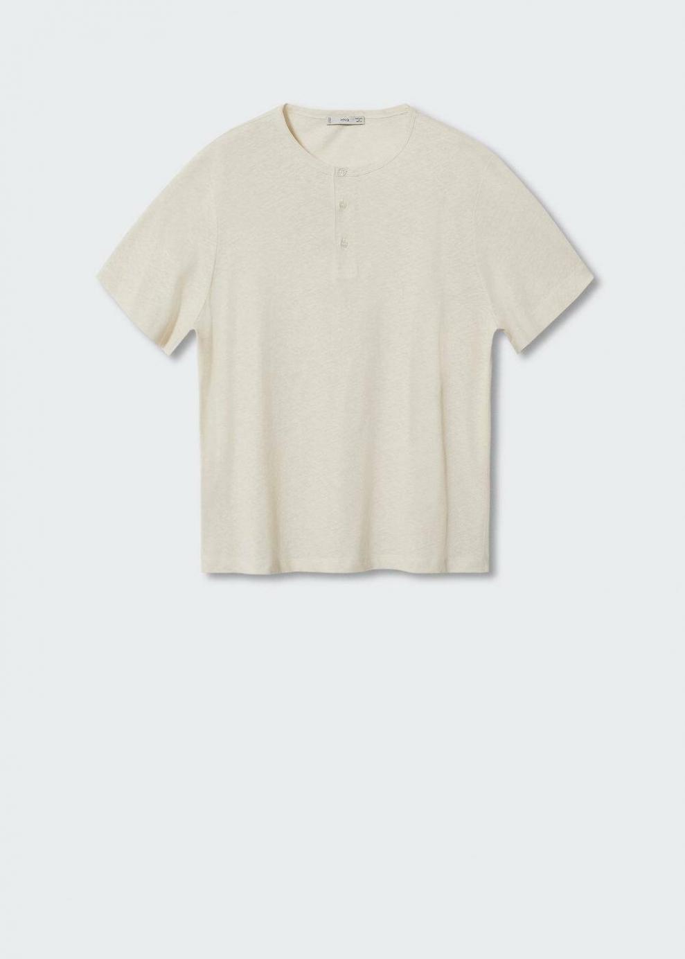 Hombre Camiseta cuello panadero lino Beige | Camisetas Mango
