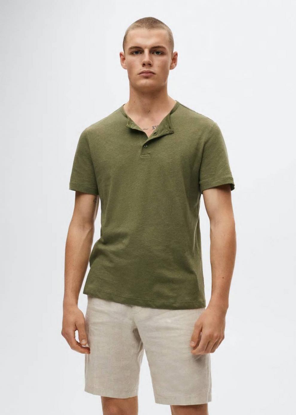 Slim fit Tejido mezcla de algodón y lino Cuello panadero Manga corta El modelo mide 183 cm y lleva una talla M Las prendas etiquetadas como Committed son productos que han sido confeccionadas con fibras y/o procesos de producción sostenible, reduciendo así su impacto ambiental. El objetivo de Mango es respaldar la implementación de prácticas más comprometidas con el medio ambiente, aumentando así, el número de prendas sostenibles en su colección.