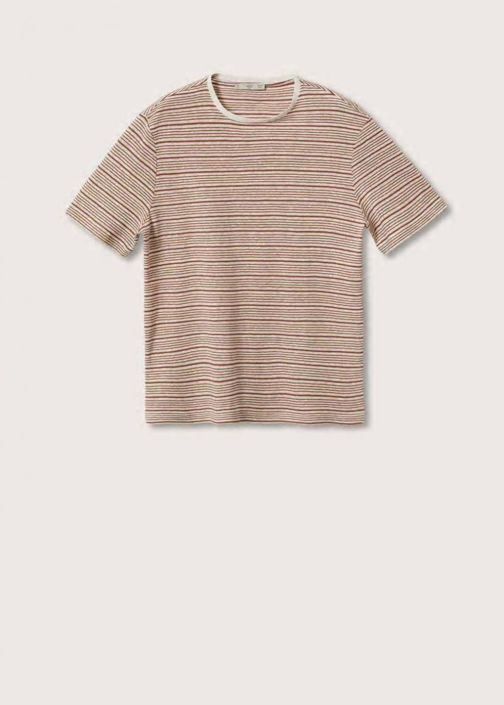 Hombre Camiseta lino rayas Naranja | Camisetas Mango