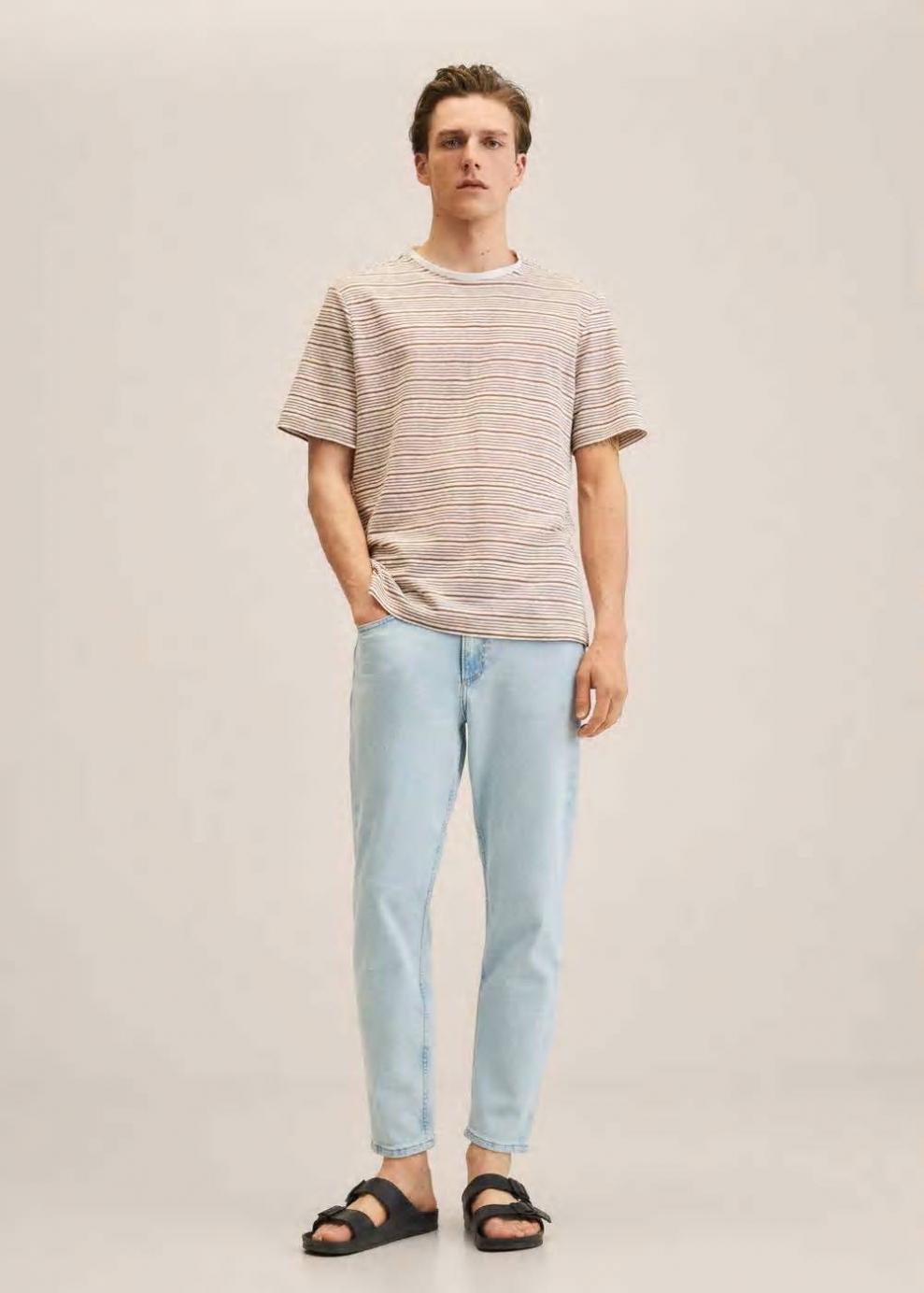 Diseño de rayas Tejido ligero Tejido mezcla de algodón y lino Cuello redondo Manga corta El modelo mide 187 cm y lleva una talla M Las prendas etiquetadas como Committed son productos que han sido confeccionadas con fibras y/o procesos de producción sostenible, reduciendo así su impacto ambiental. El objetivo de Mango es respaldar la implementación de prácticas más comprometidas con el medio ambiente, aumentando así, el número de prendas sostenibles en su colección.