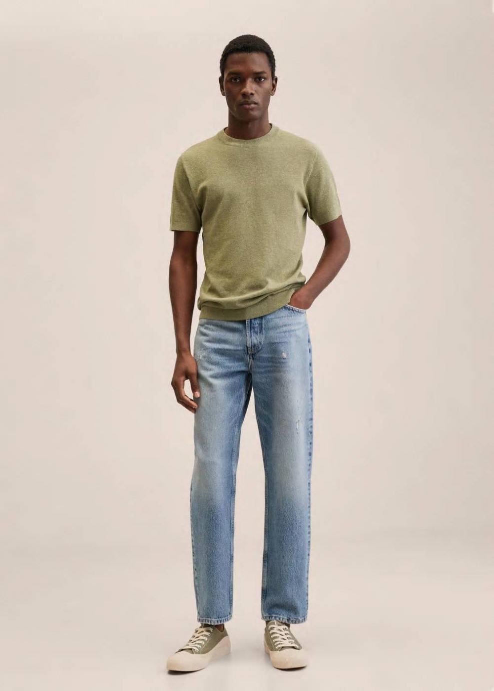 Regular fit Tejido de punto fino Tejido con estructura Tejido mezcla de algodón sostenible Cuello redondo Manga corta Terminaciones elásticas Las prendas etiquetadas como Committed son productos que han sido confeccionadas con fibras y/o procesos de producción sostenible, reduciendo así su impacto ambiental. El objetivo de Mango es respaldar la implementación de prácticas más comprometidas con el medio ambiente, aumentando así, el número de prendas sostenibles en su colección.